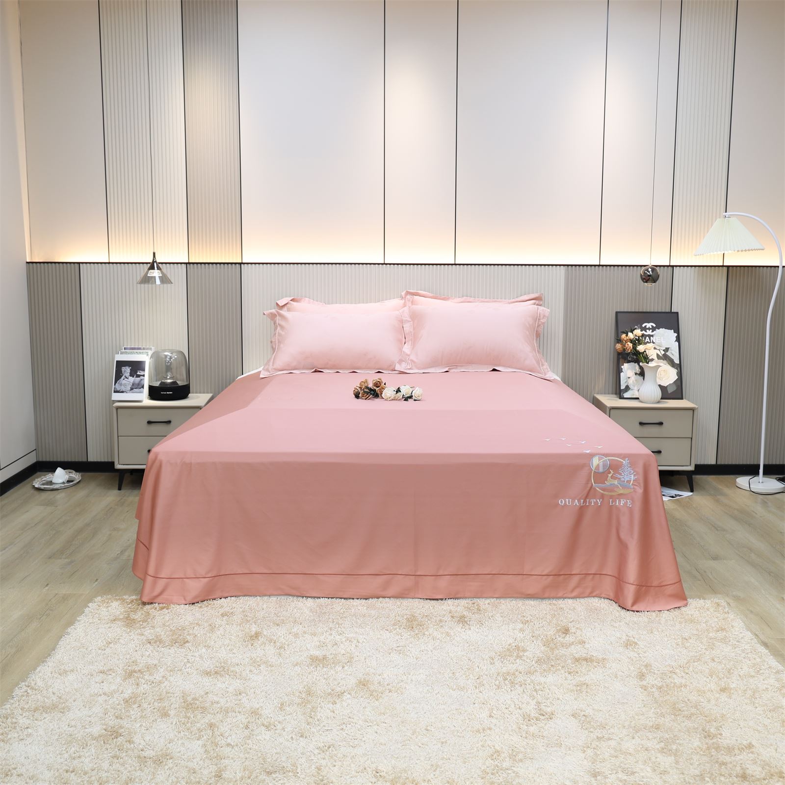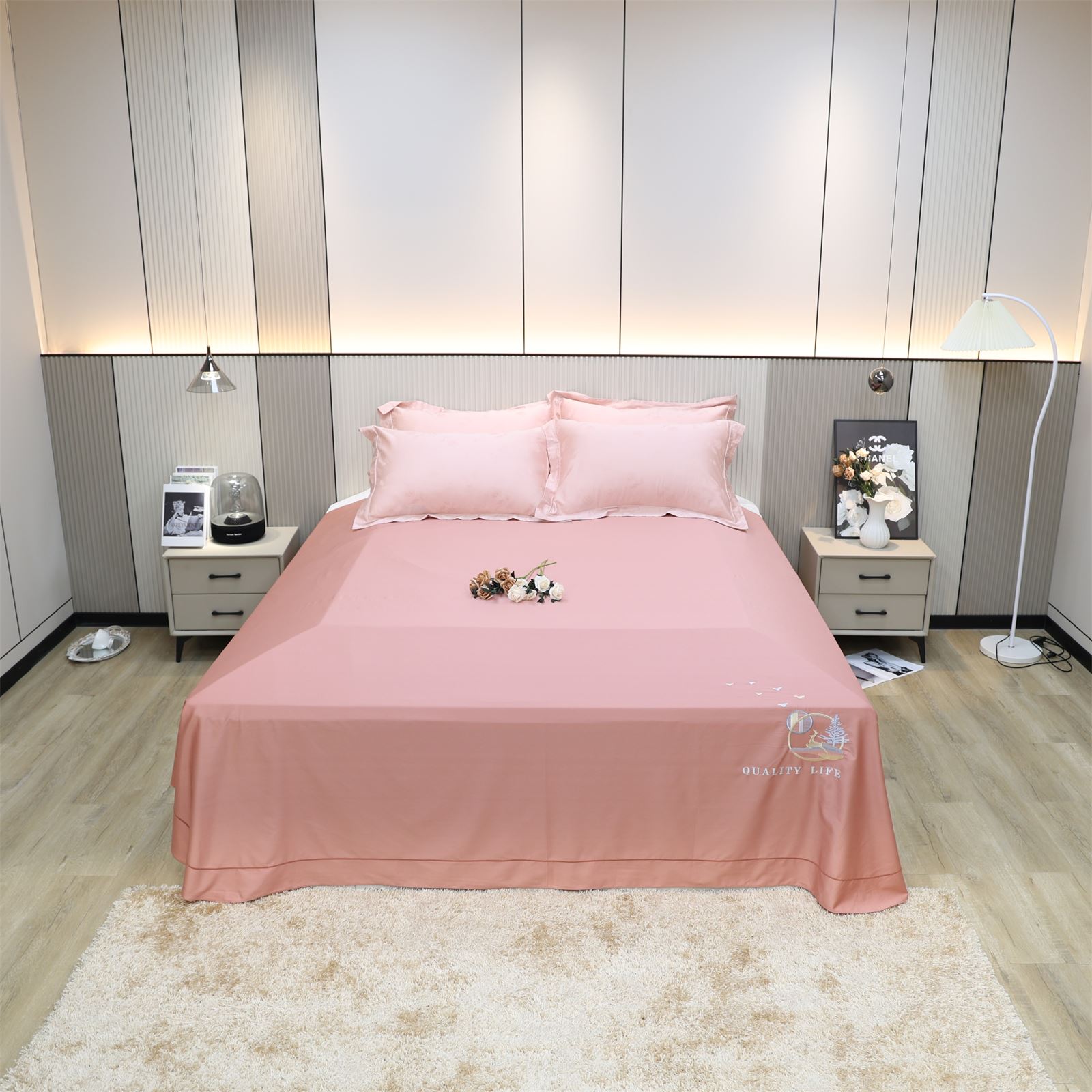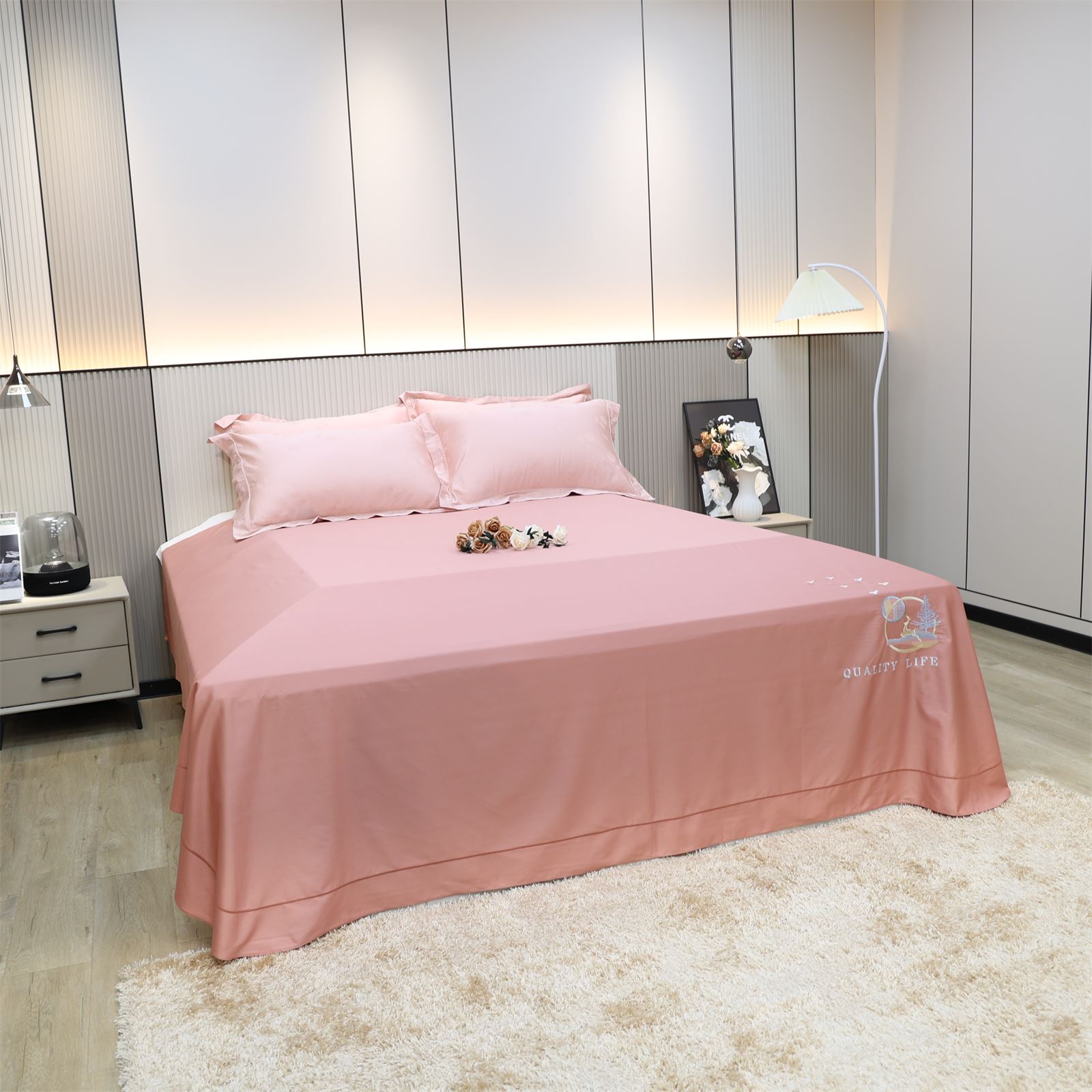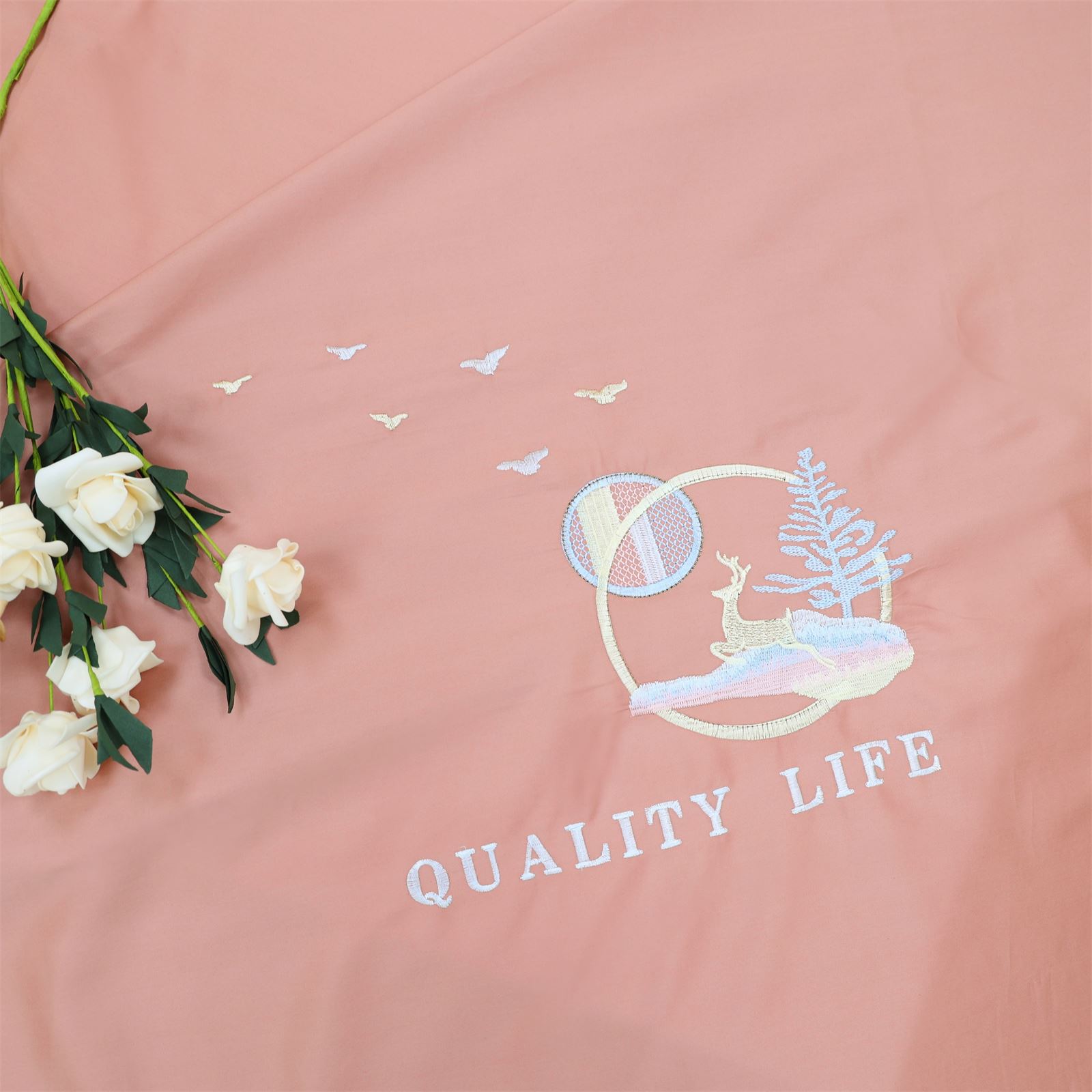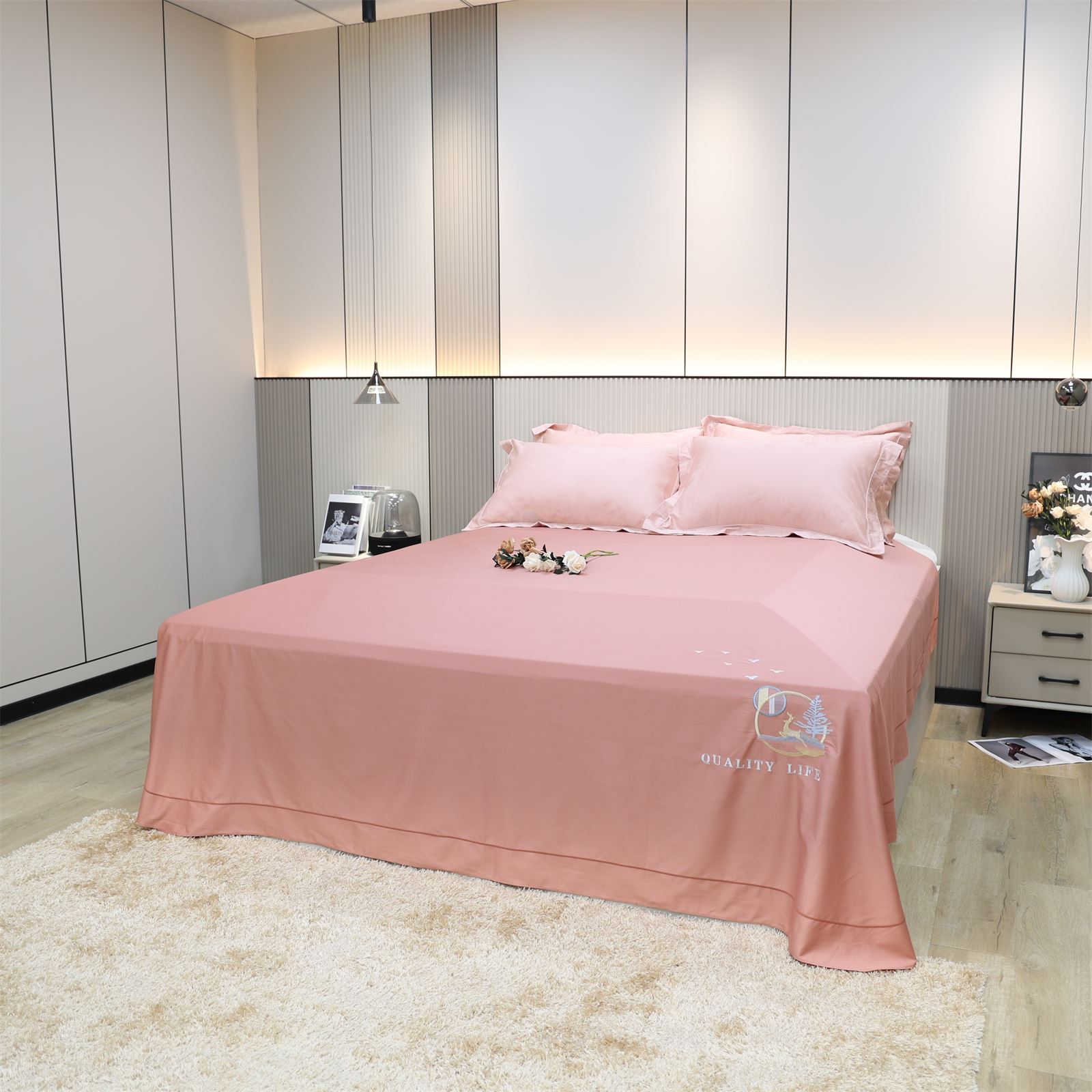 F-56 长绒棉绣花工艺床单-豆沙粉