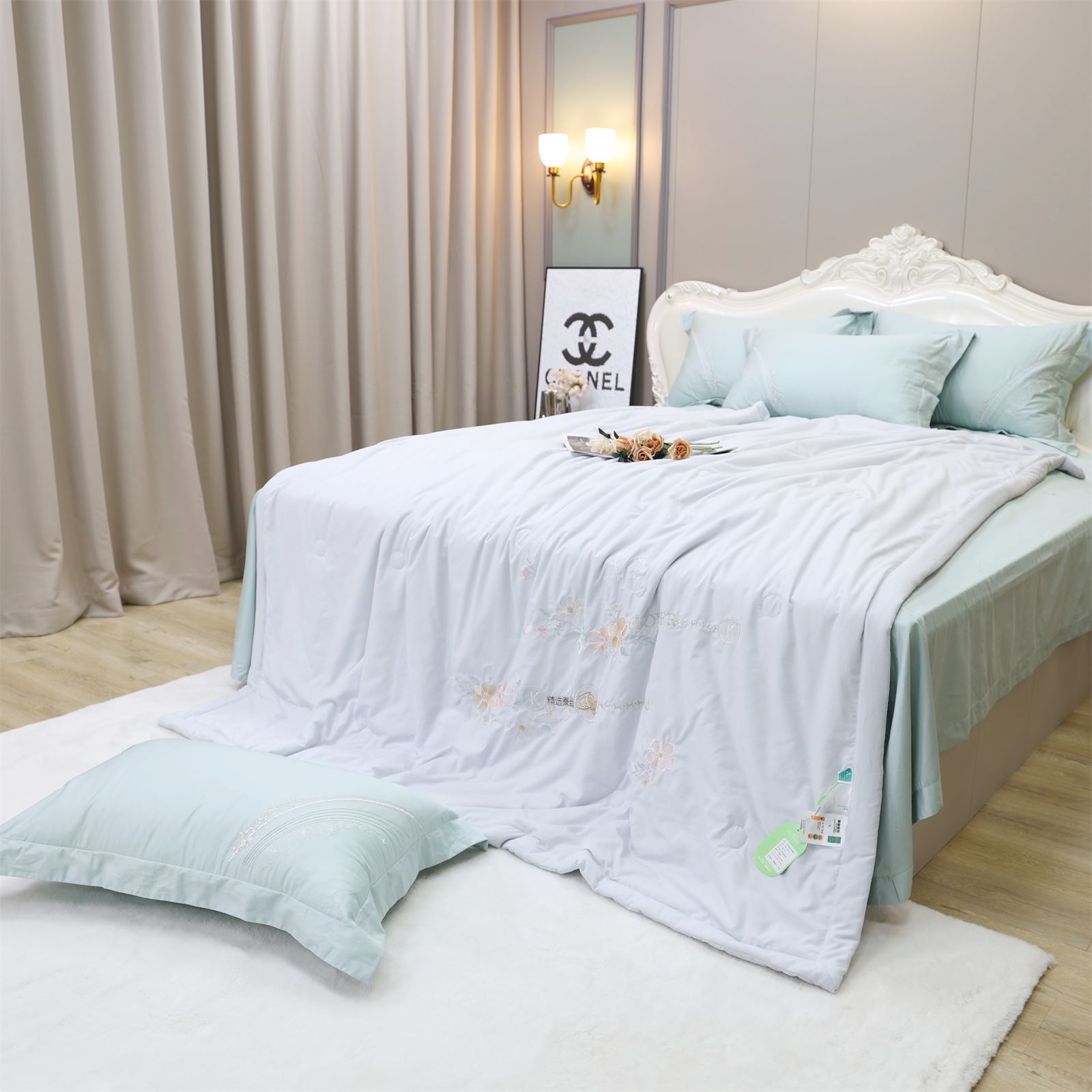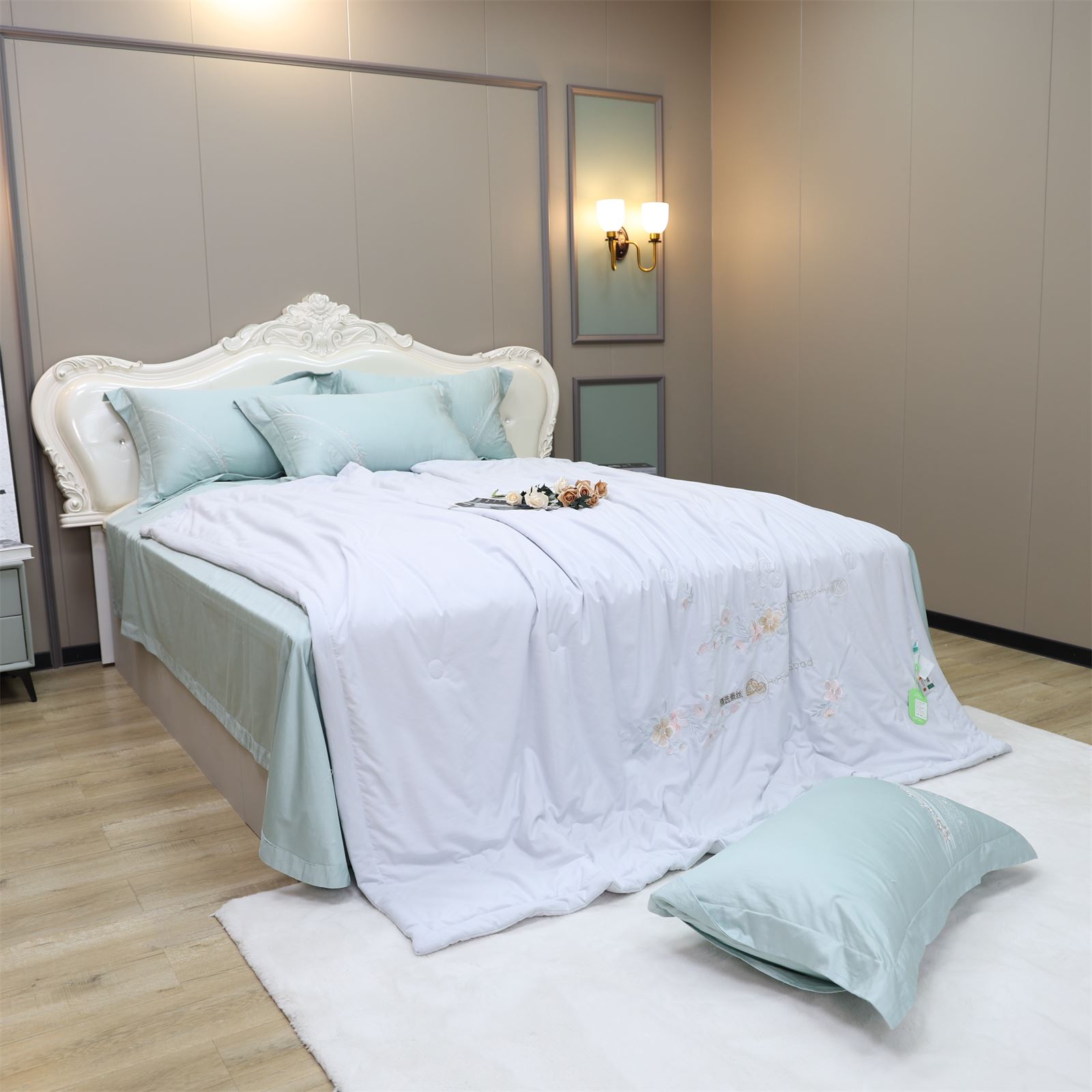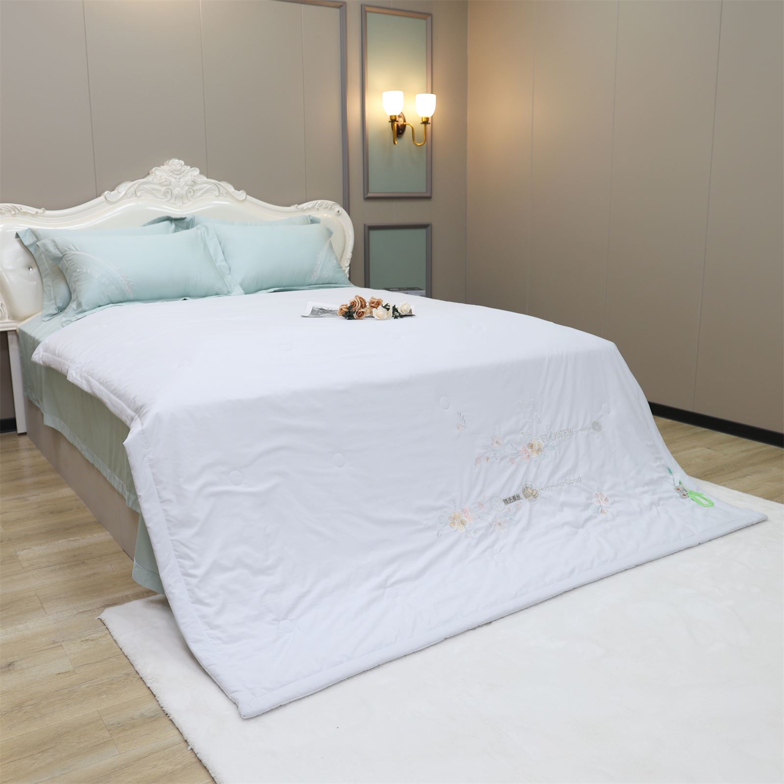 D-78奶小冻 绣花护肤夏被(远天蓝)