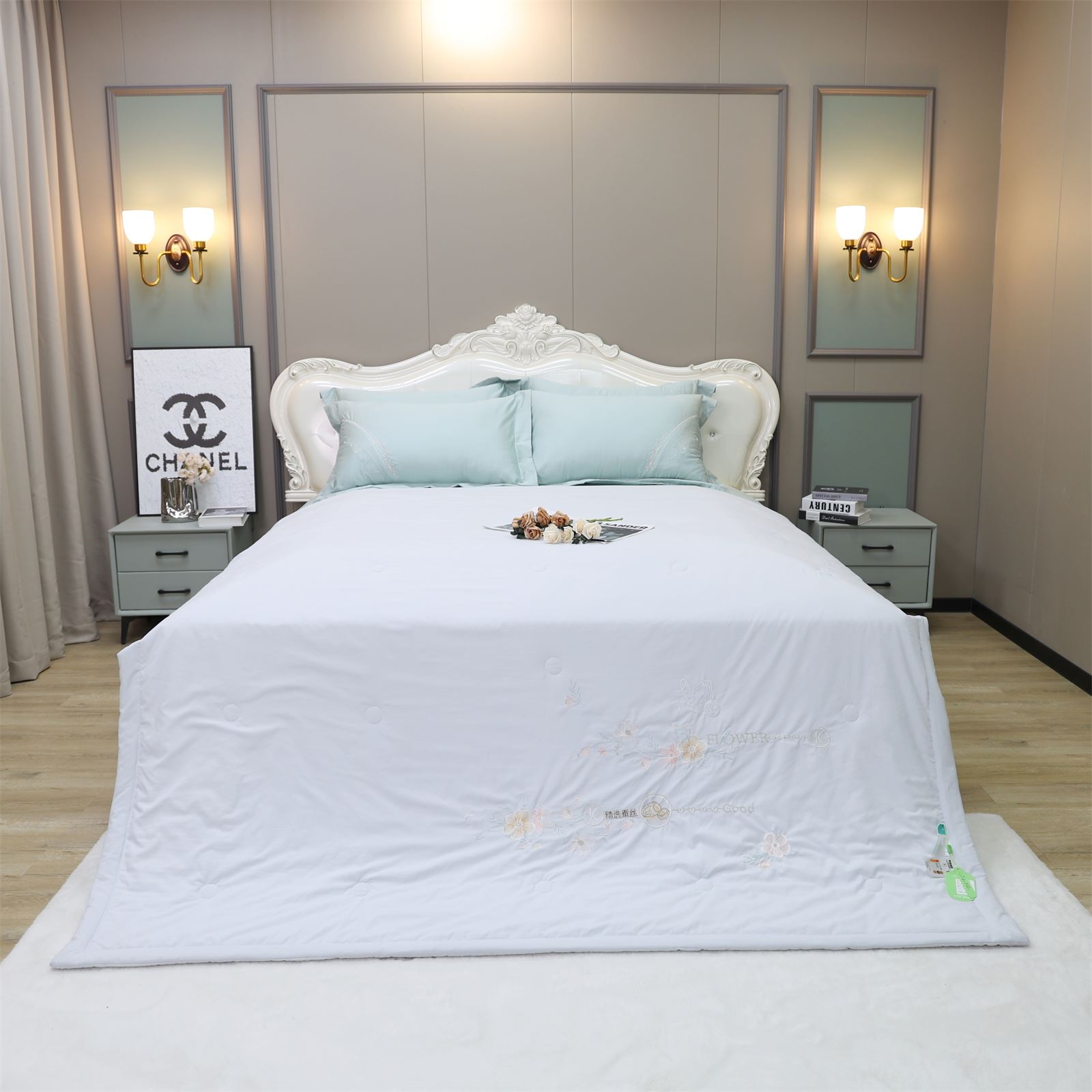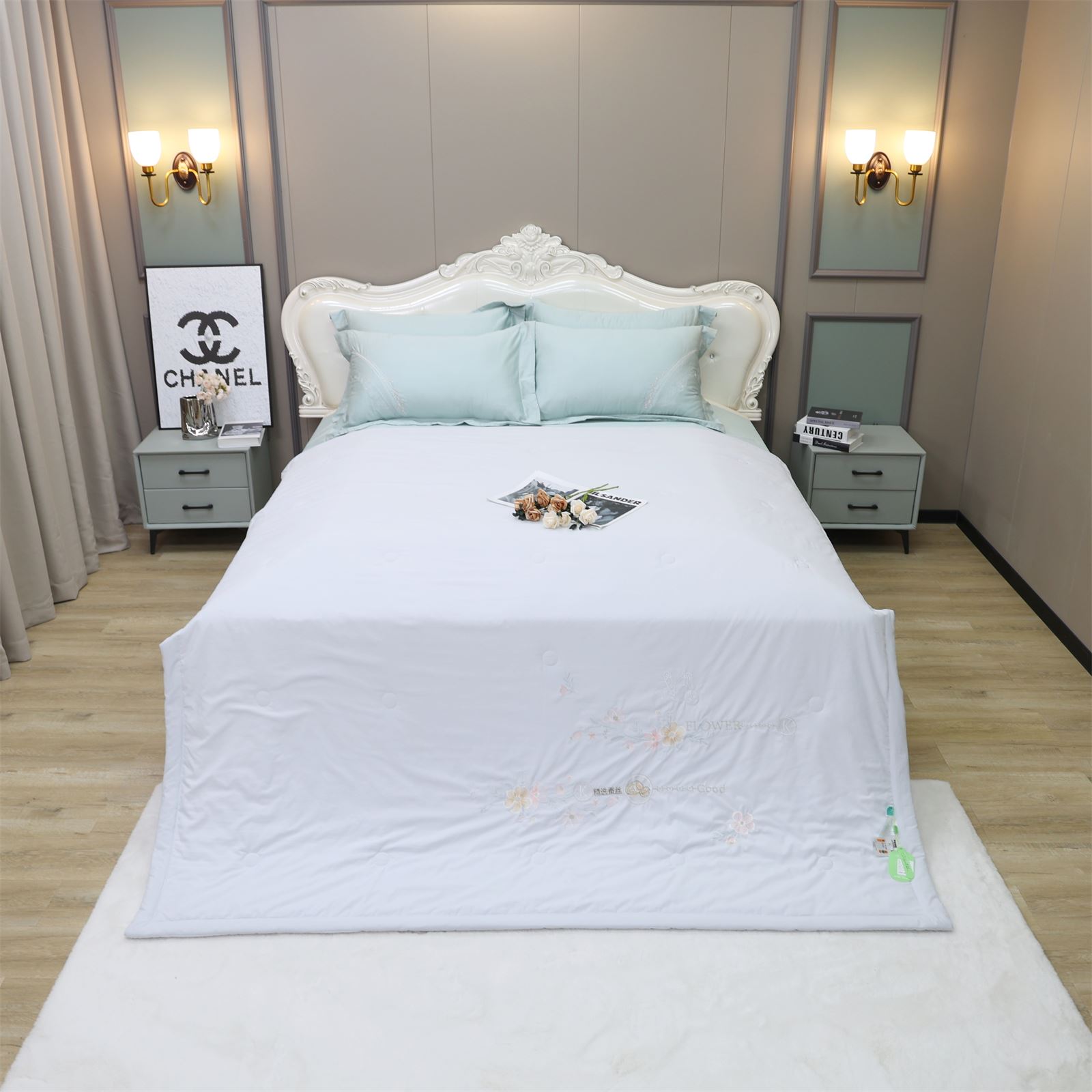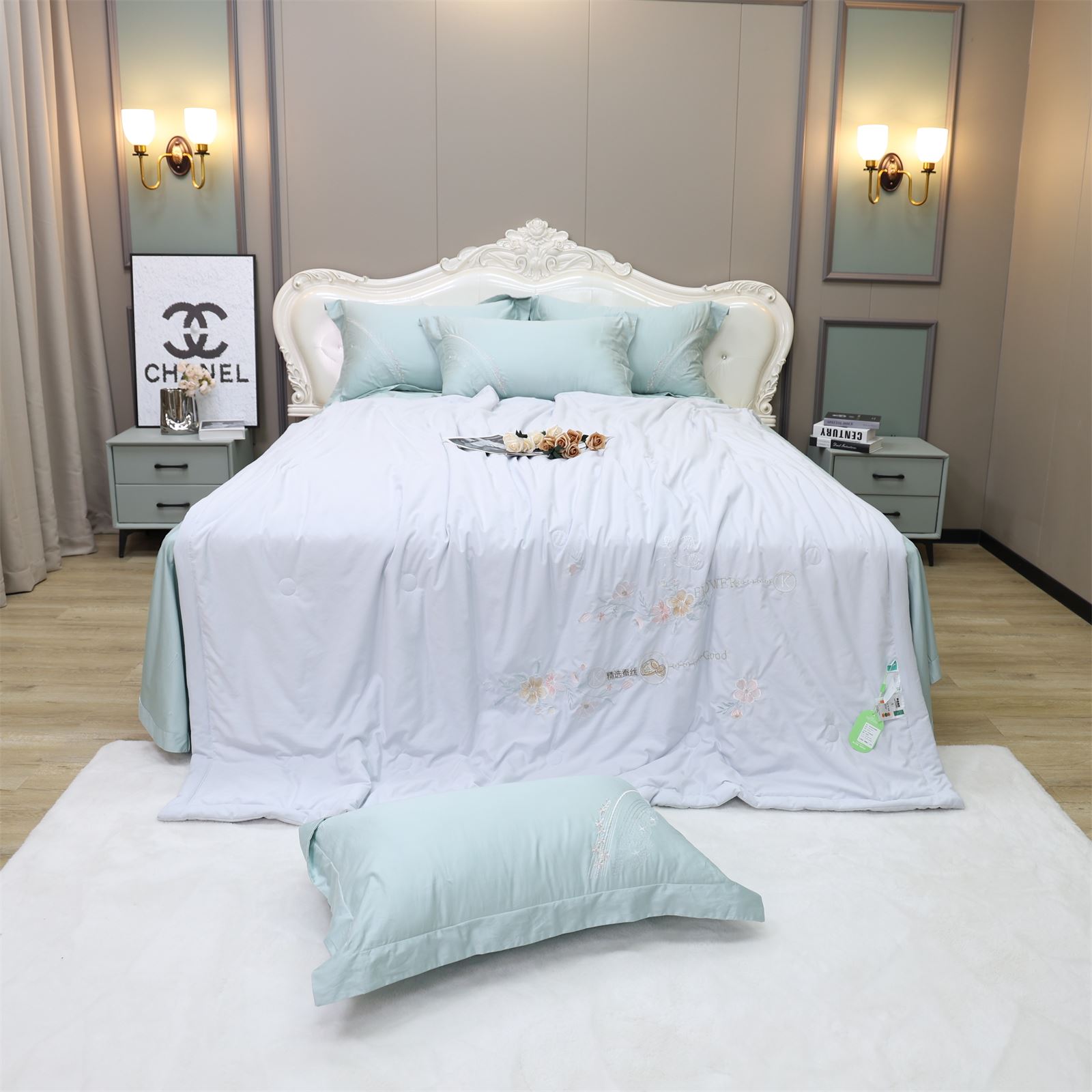 D-78奶小冻 绣花护肤夏被(远天蓝)