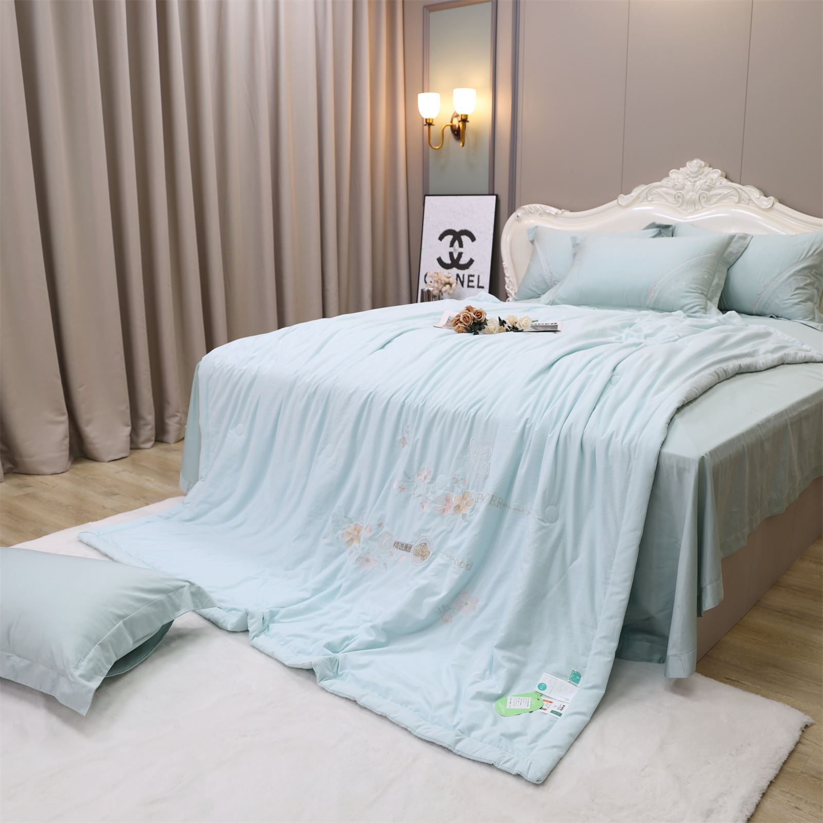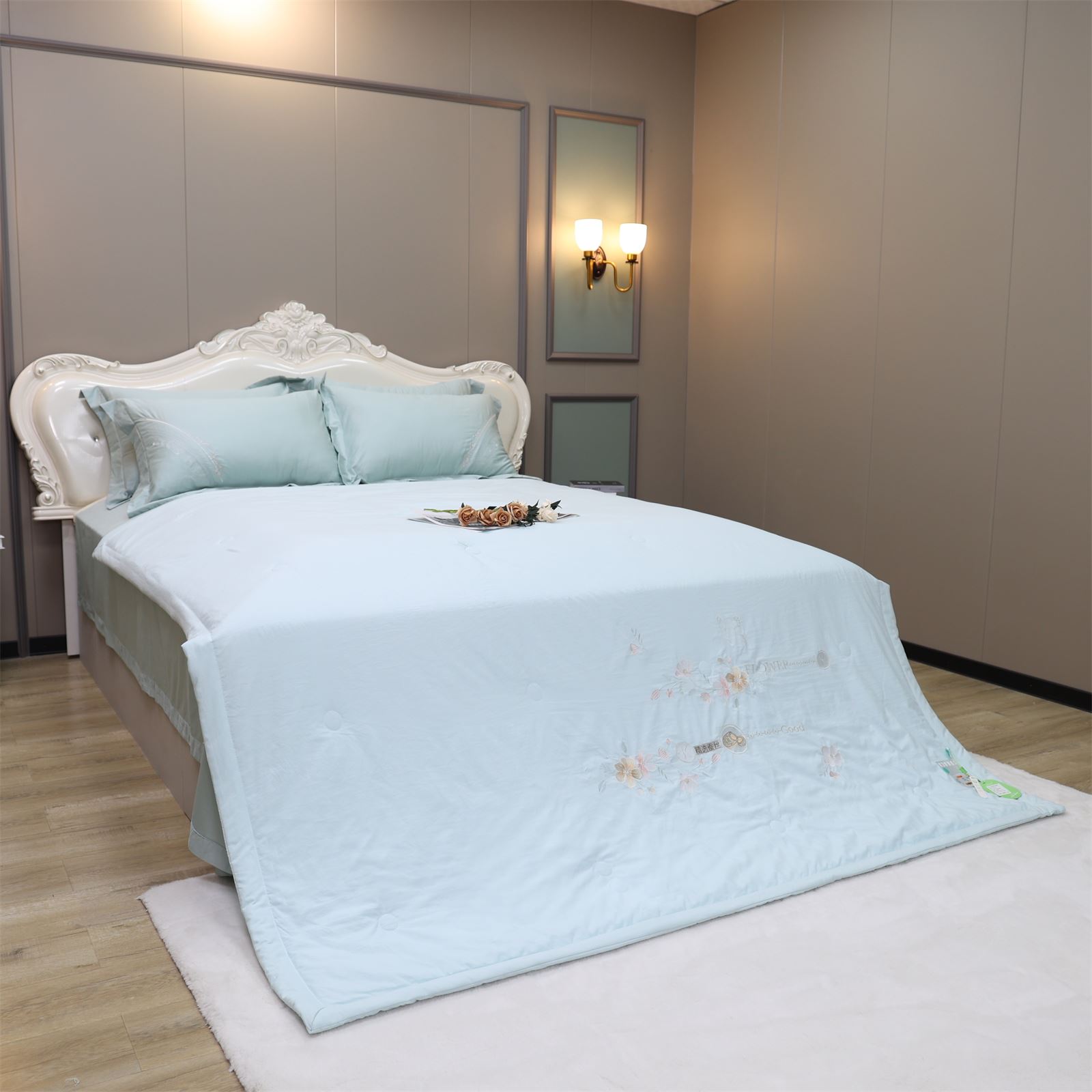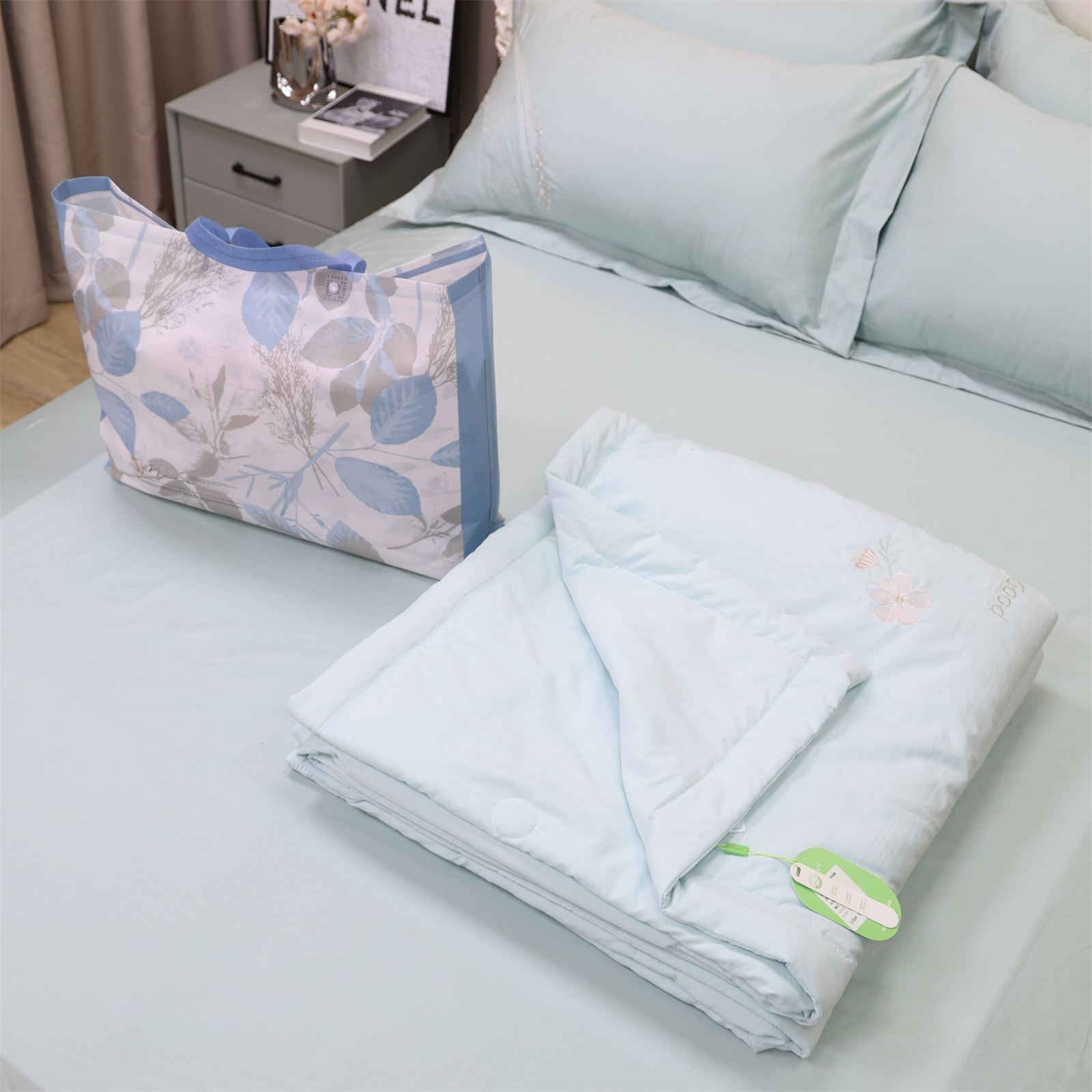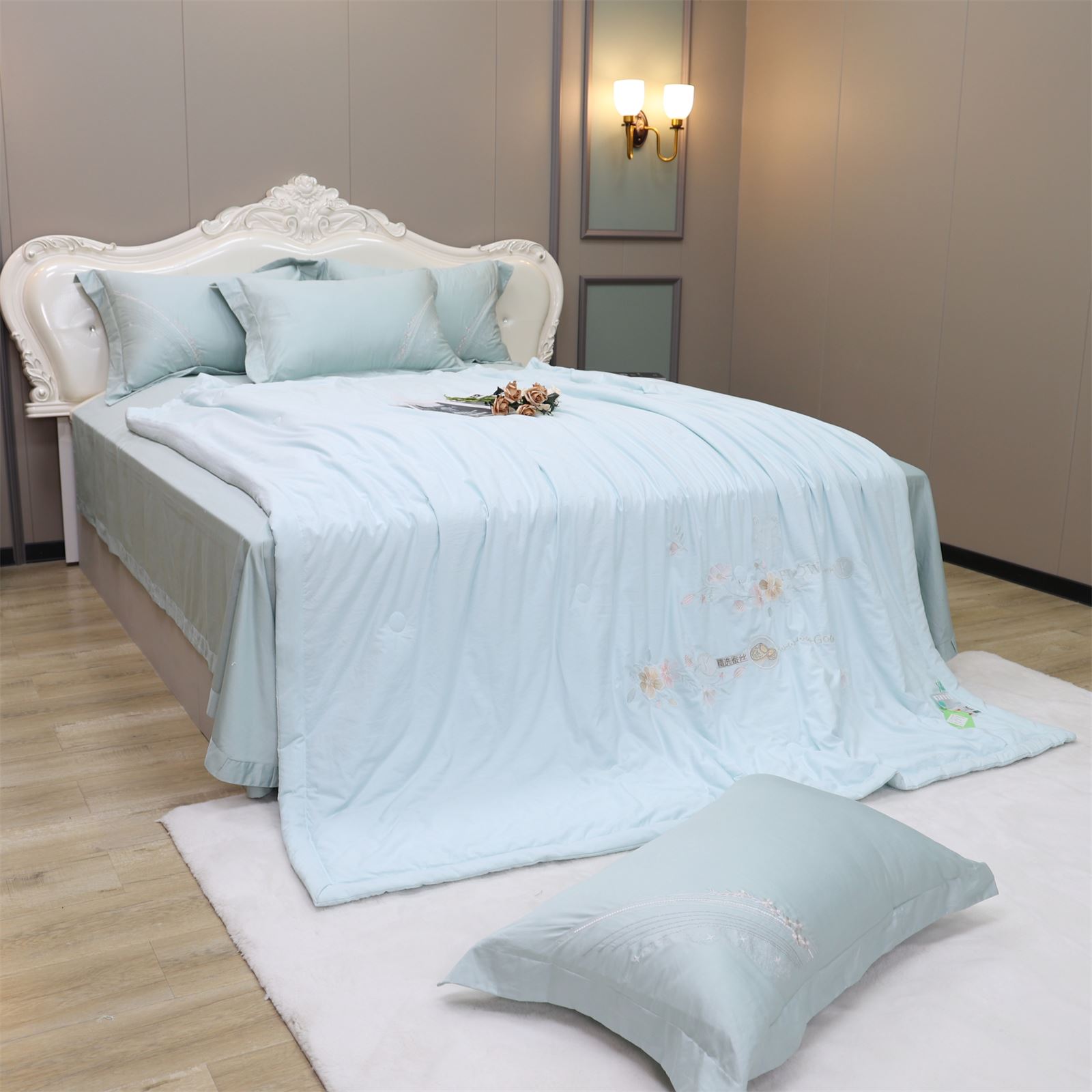 D-81奶小冻 绣花护肤夏被(海天蓝)