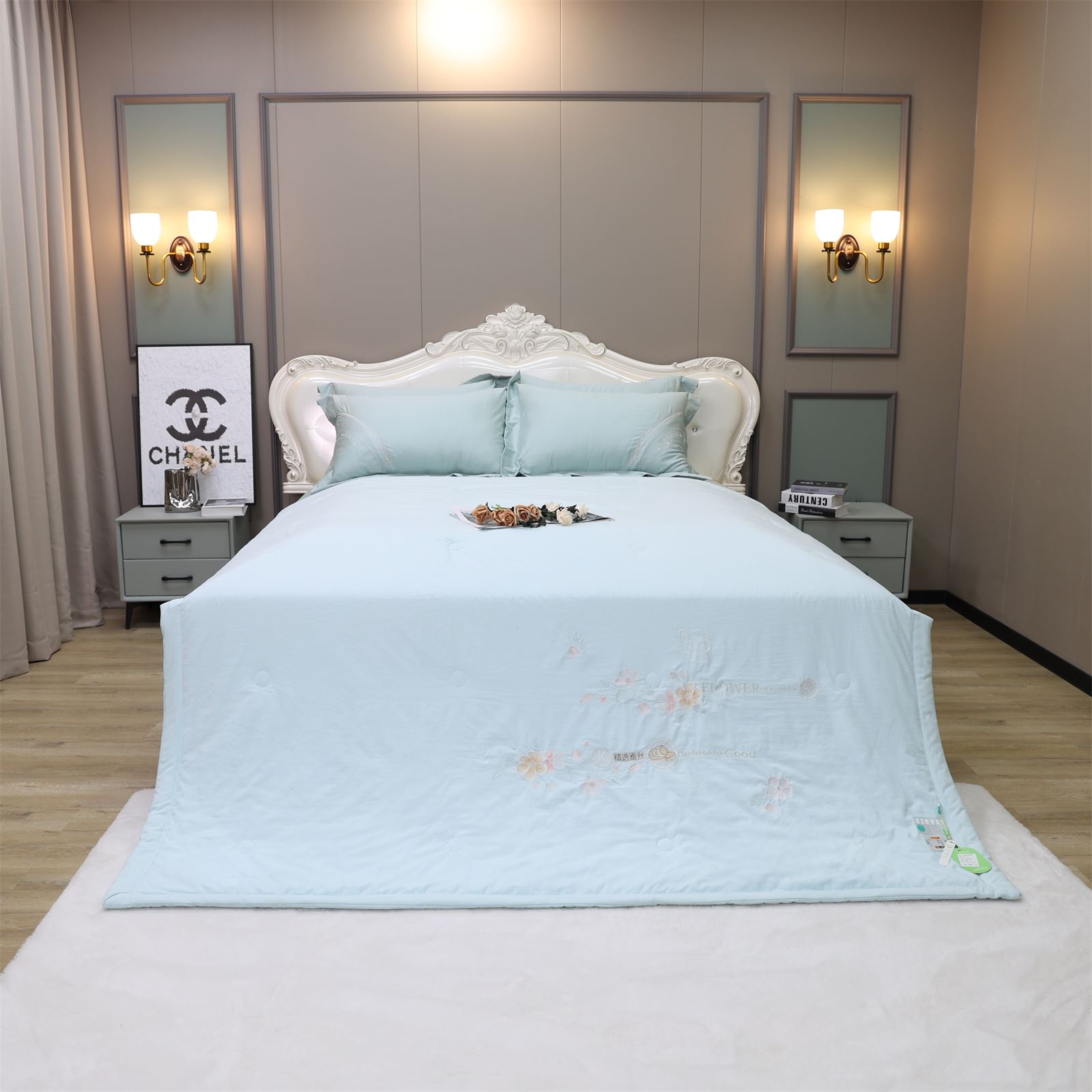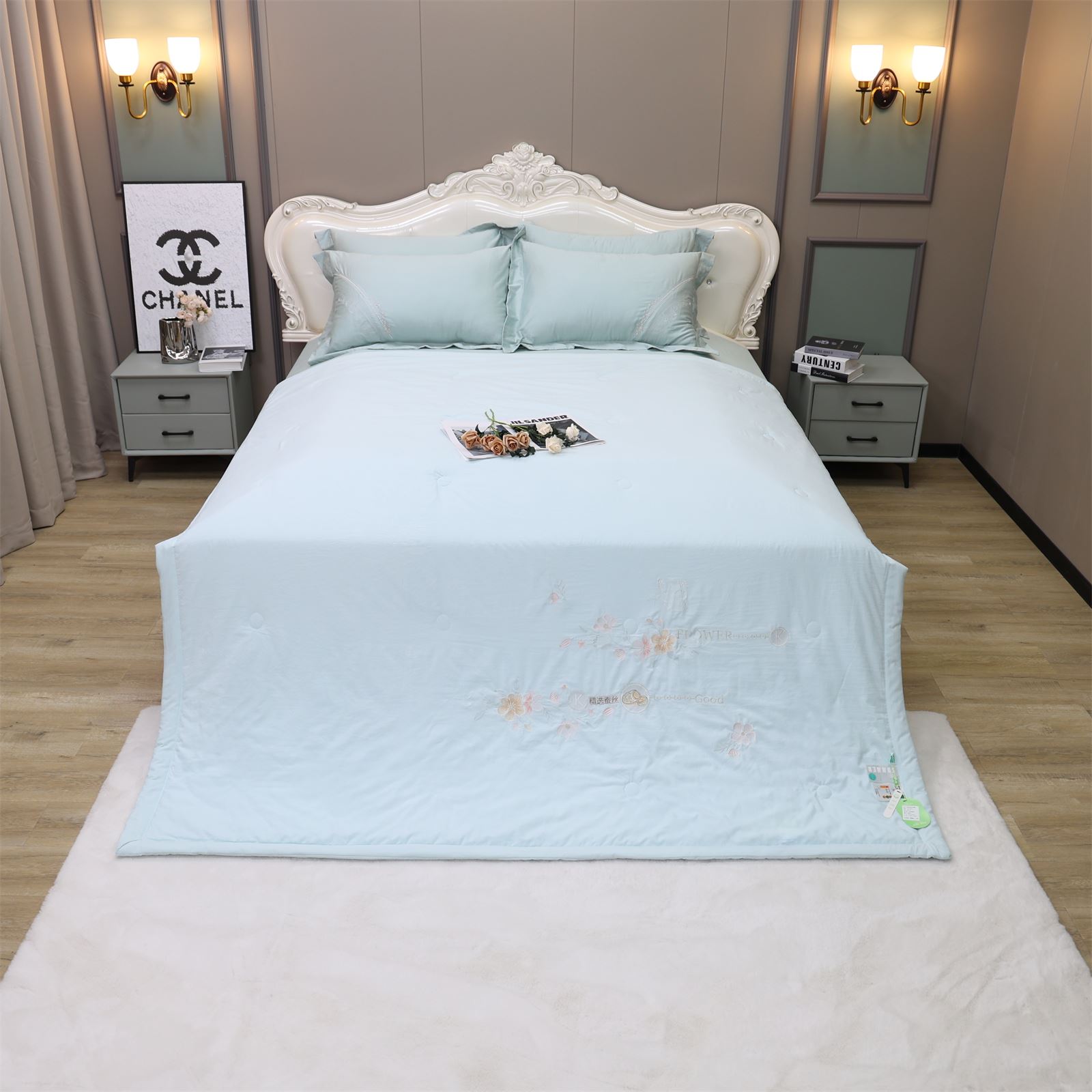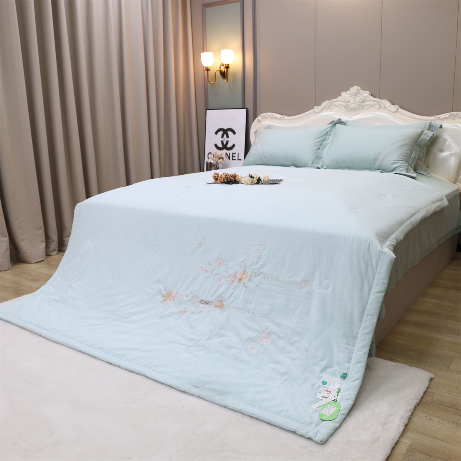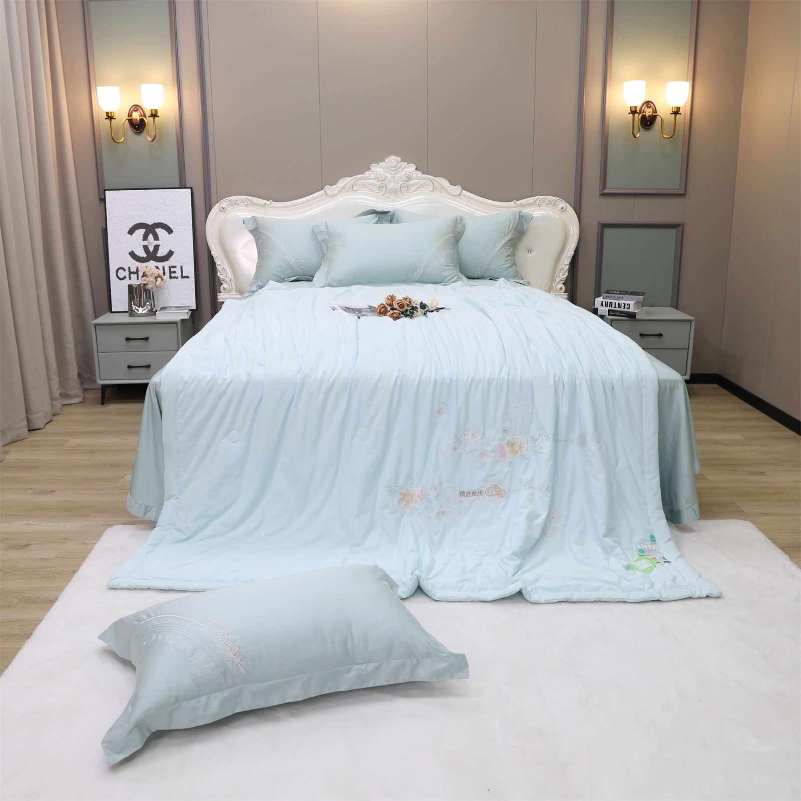 D-81奶小冻 绣花护肤夏被(海天蓝)