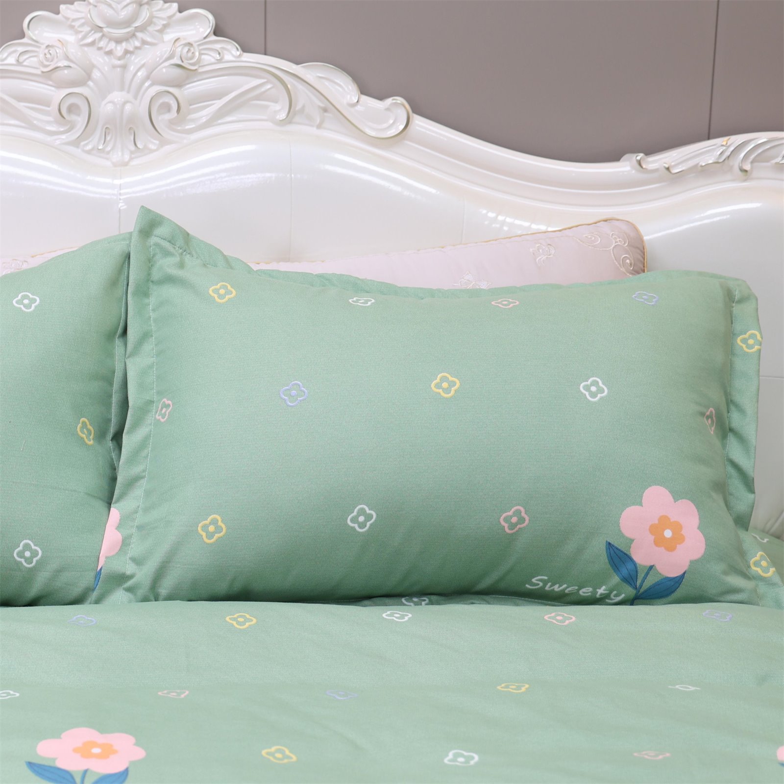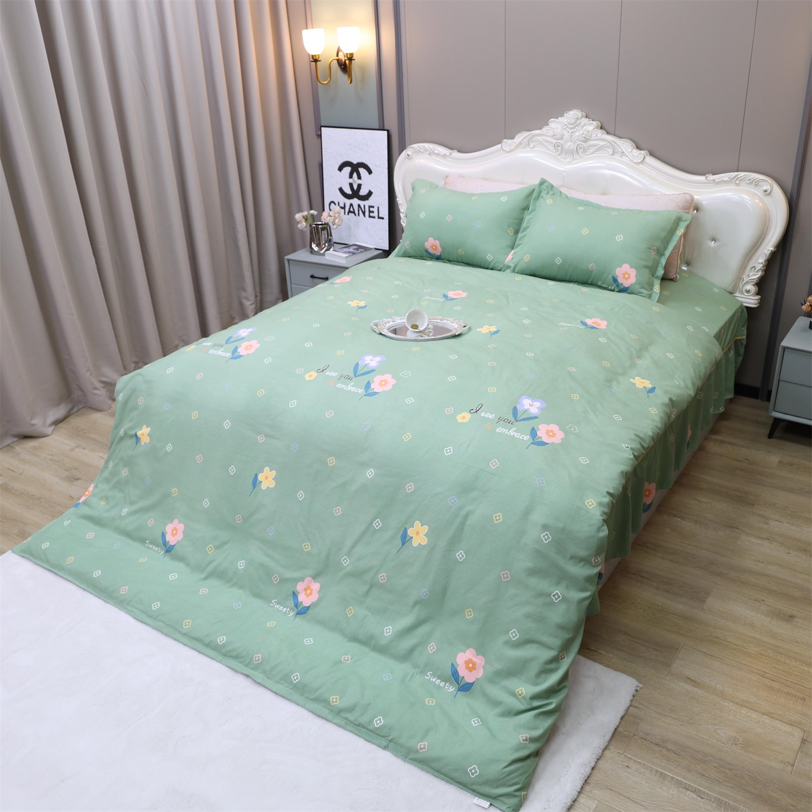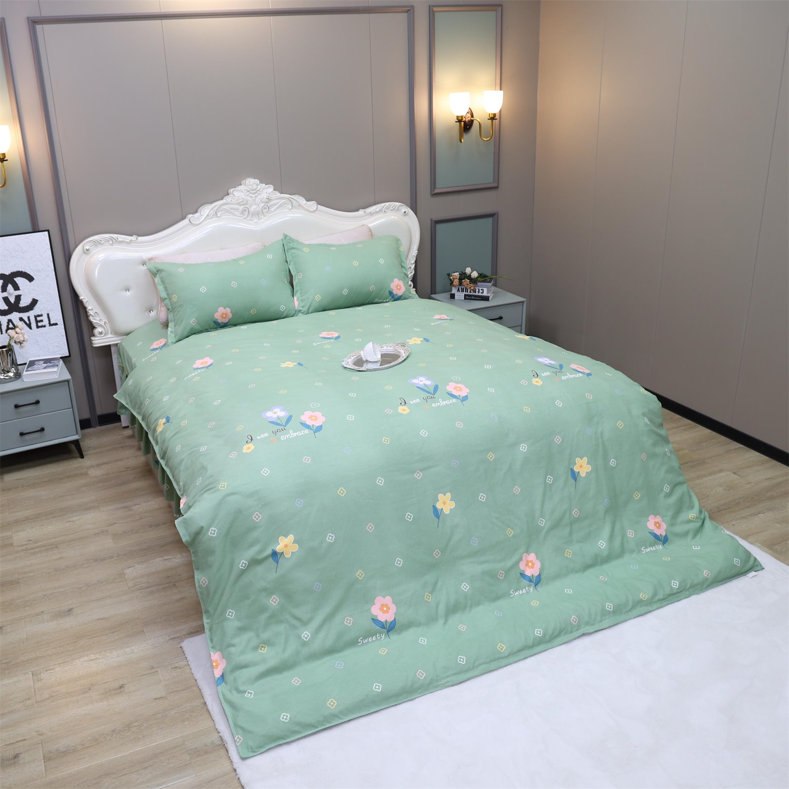 K-236 加厚水洗棉四件套绿-花朵