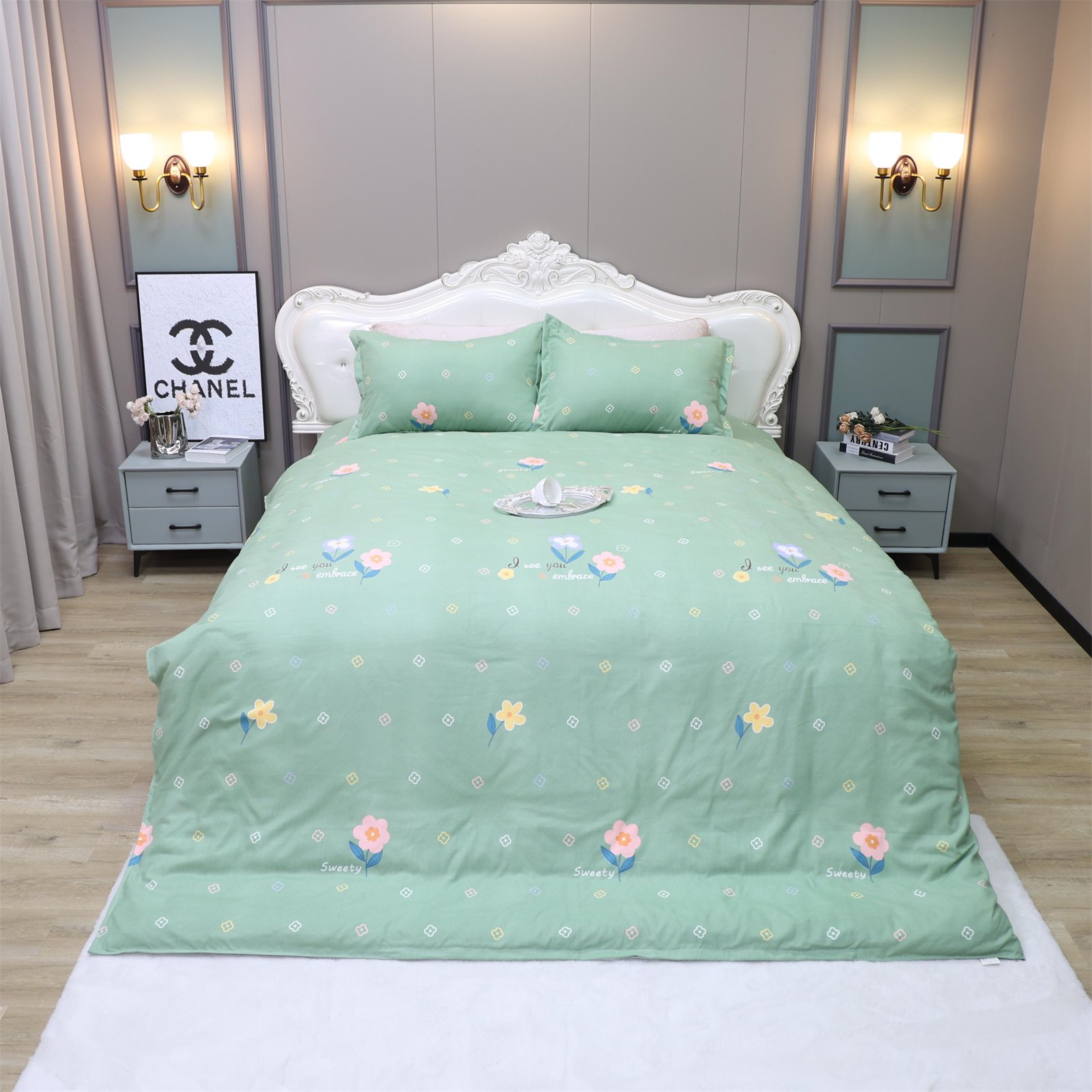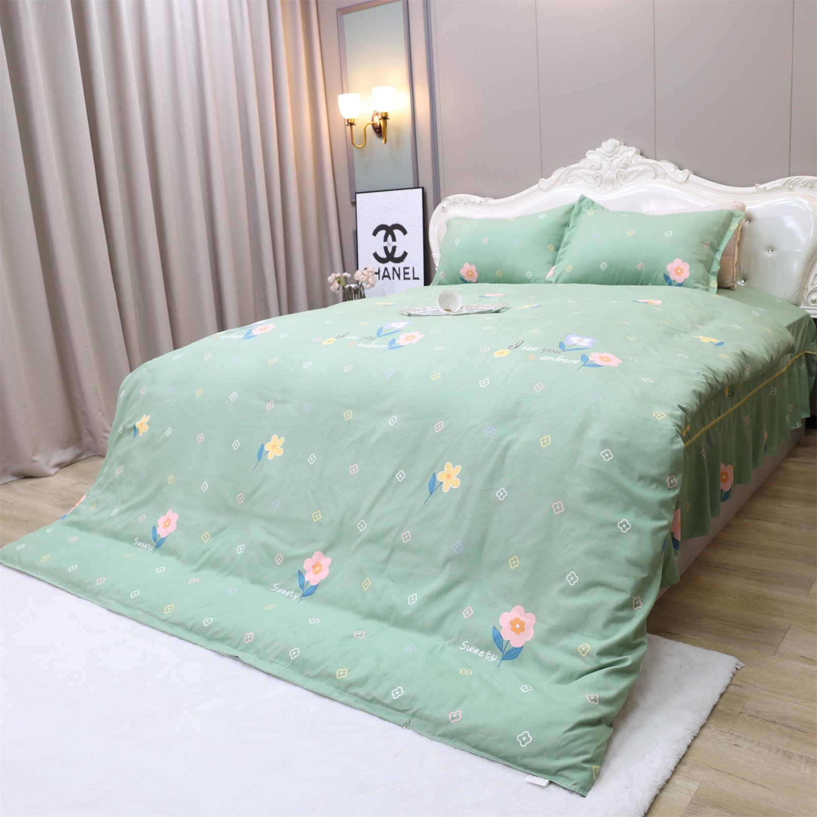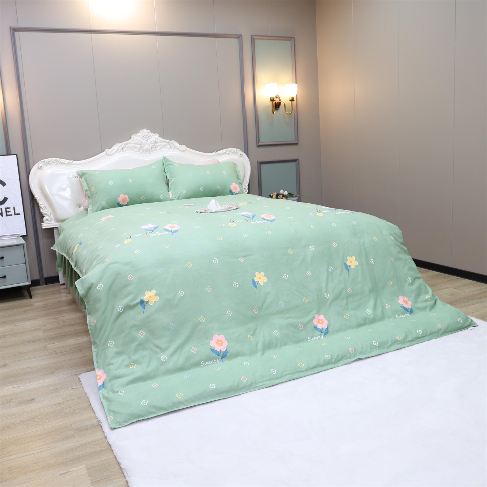 K-236 加厚水洗棉四件套绿-花朵