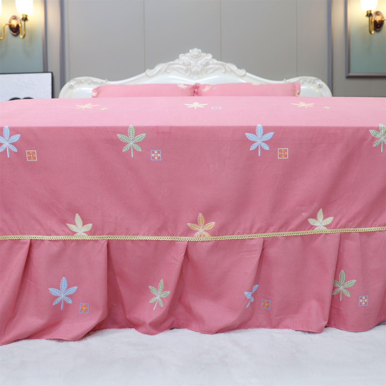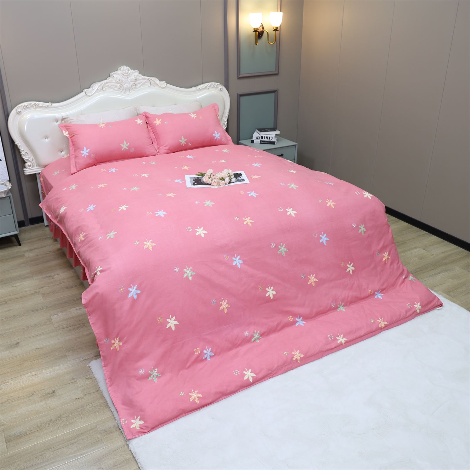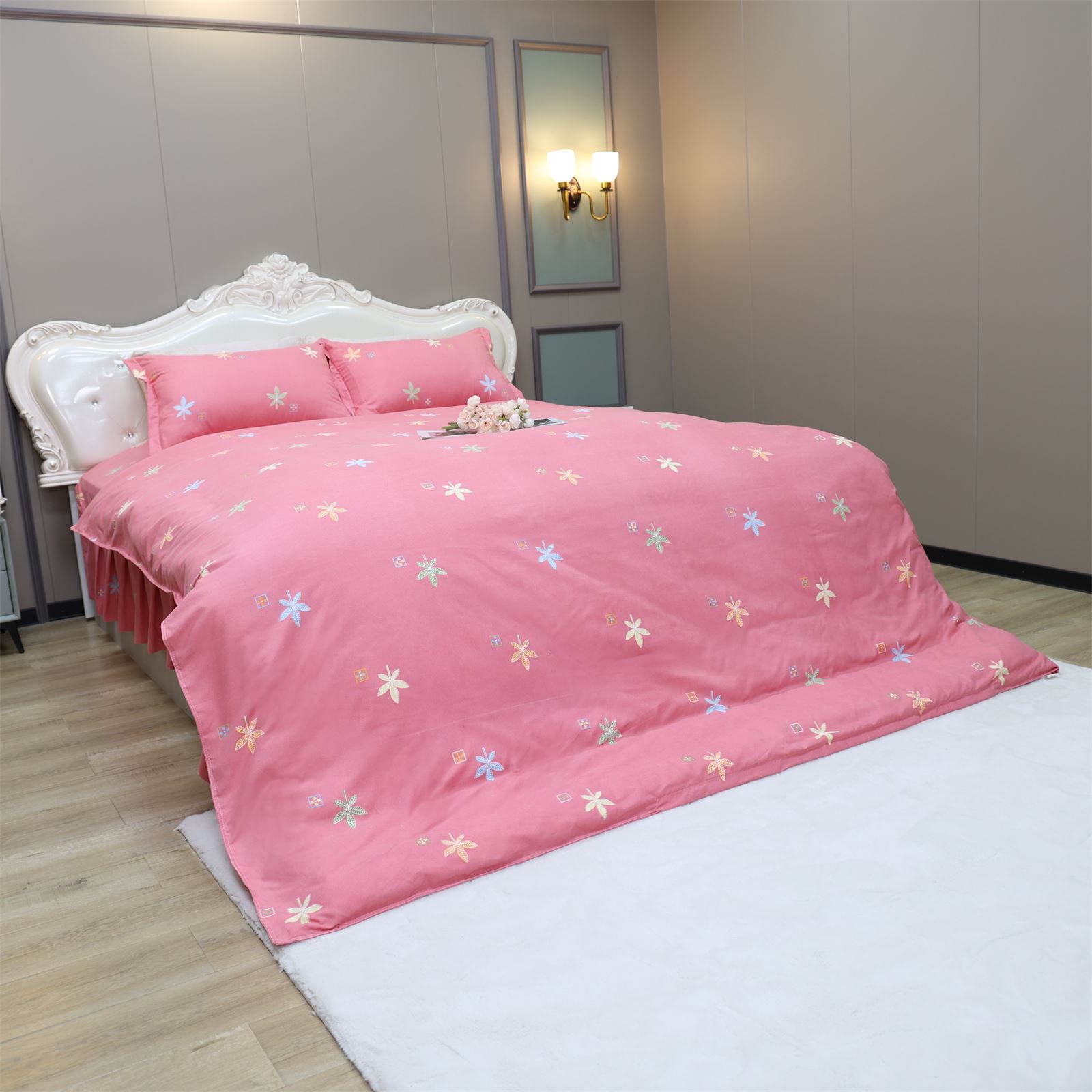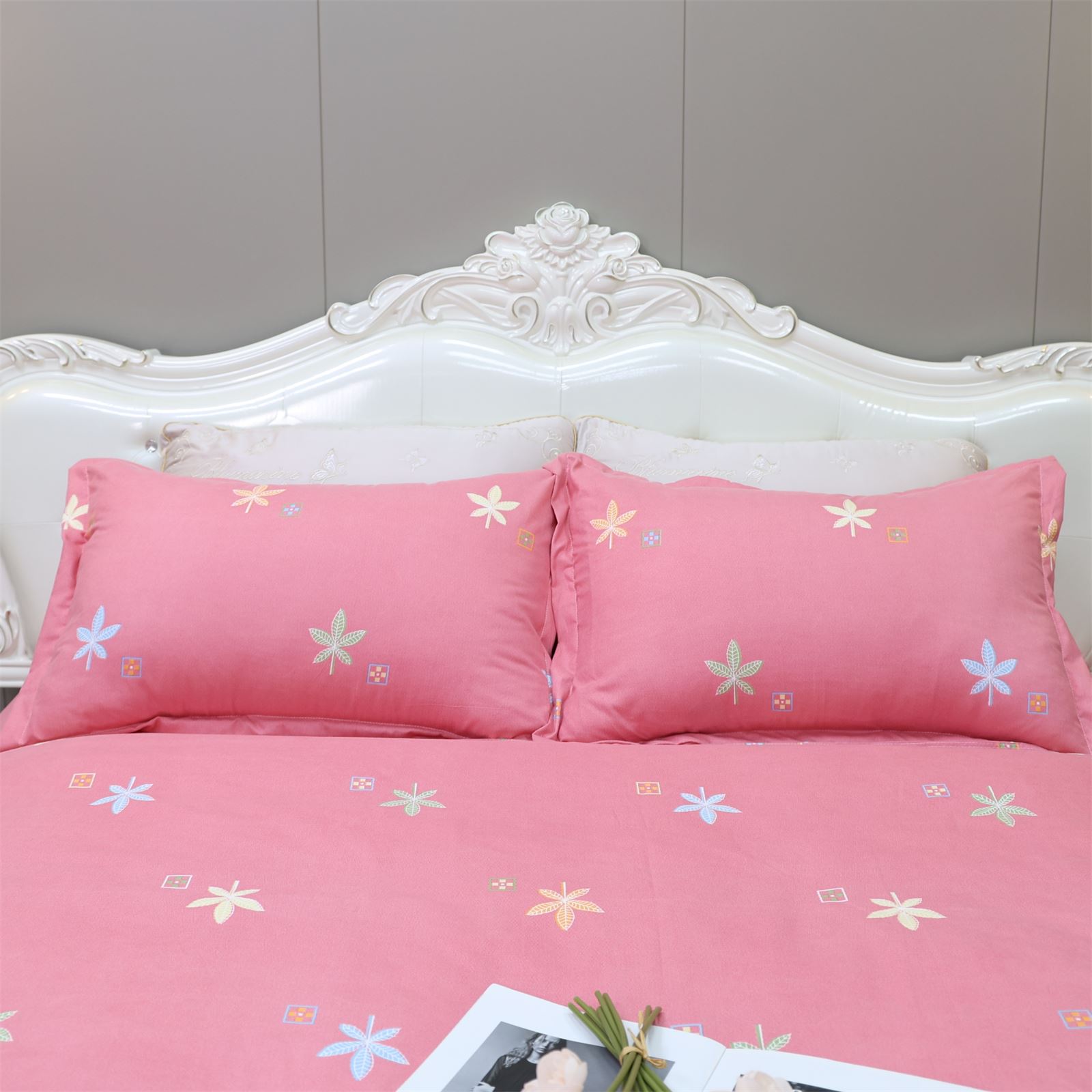 K-227 加厚水洗棉四件套粉-枫叶情