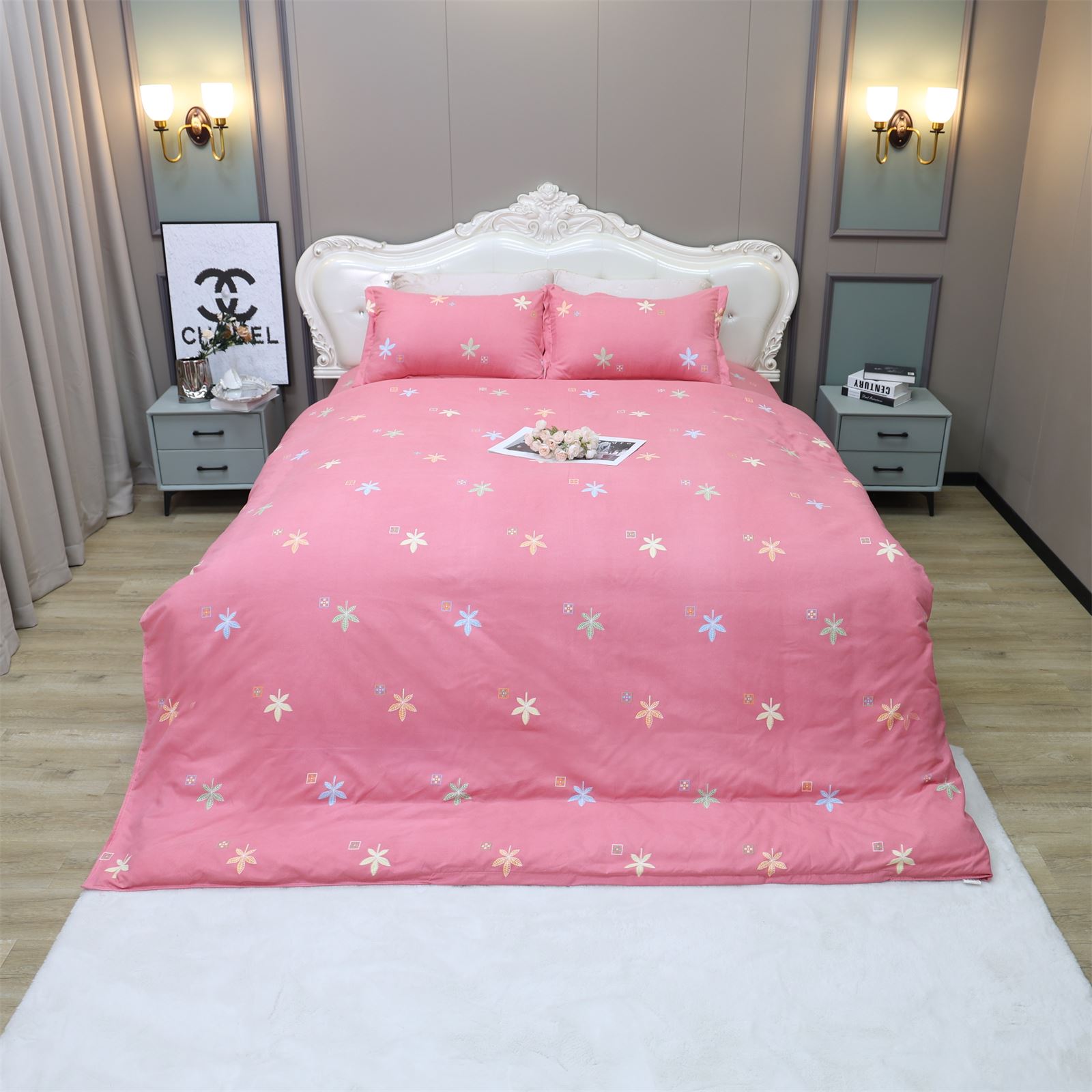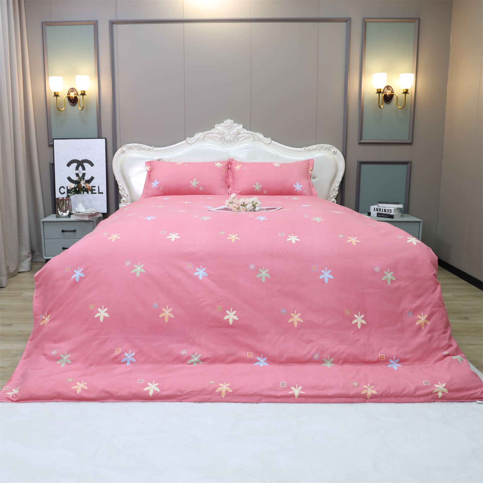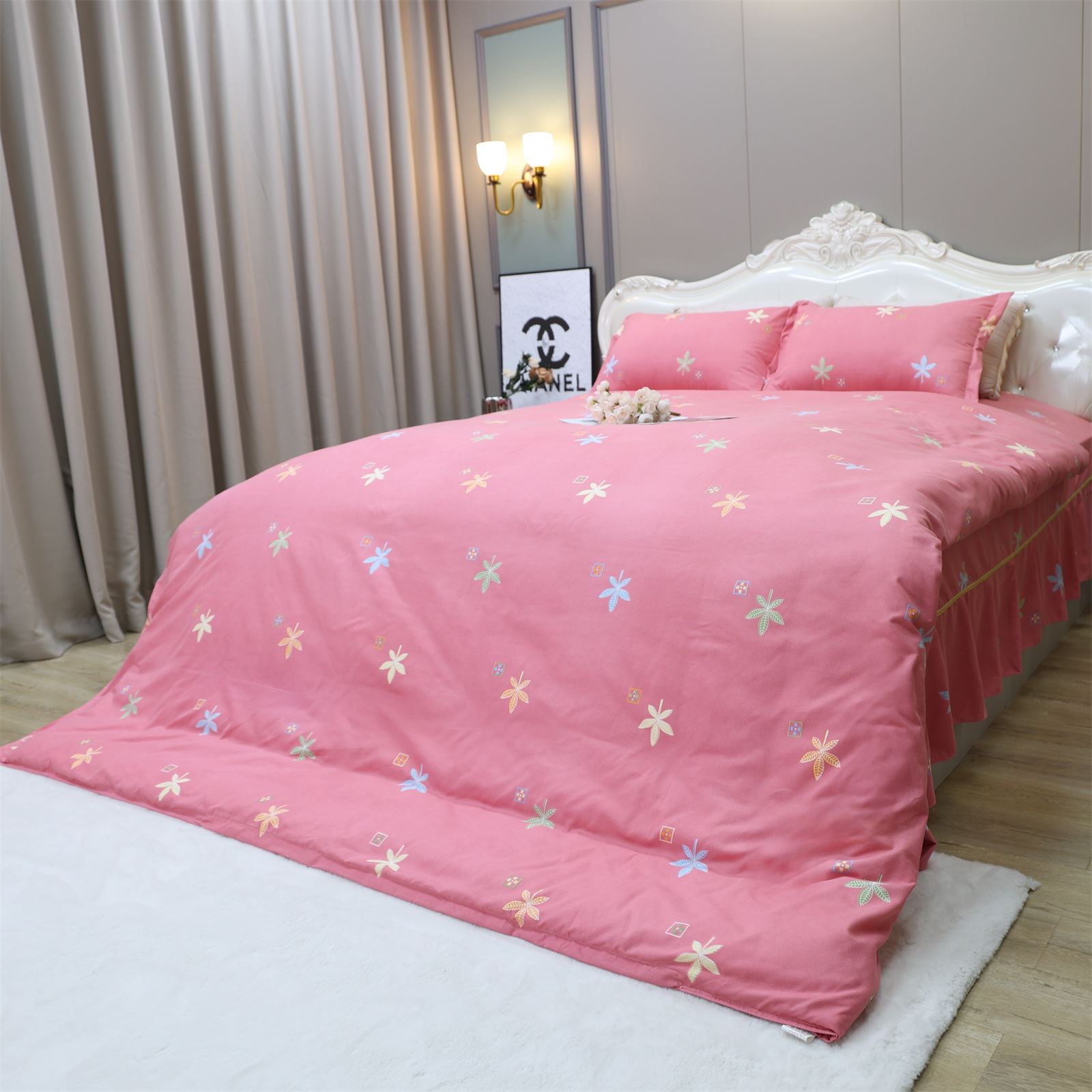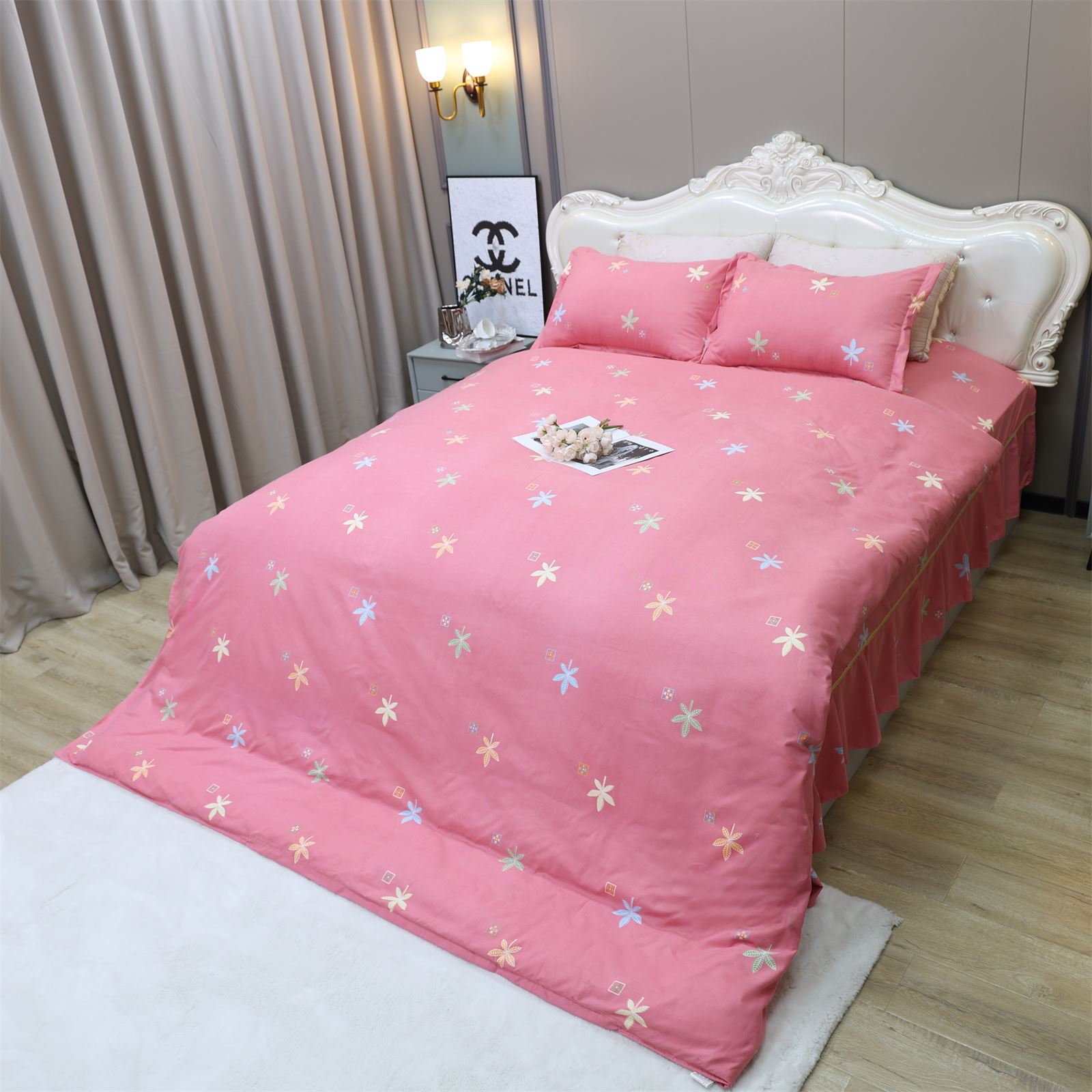 K-227 加厚水洗棉四件套粉-枫叶情