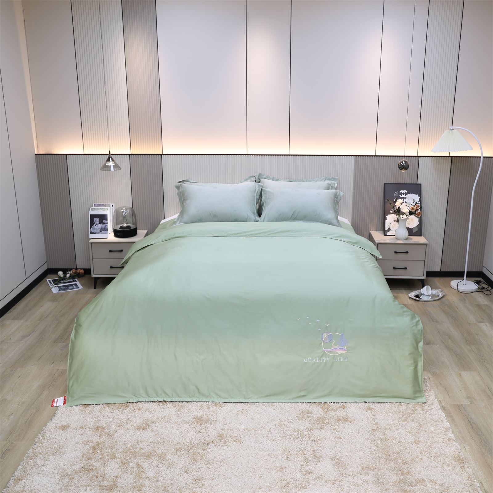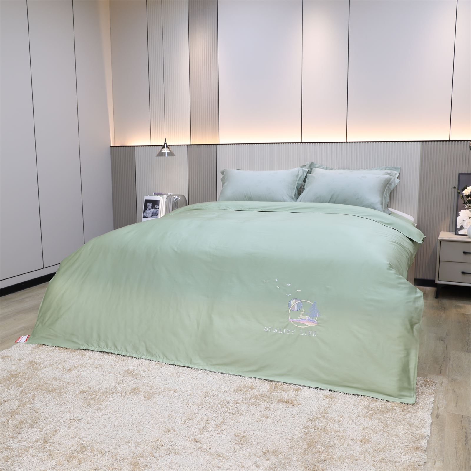 F-59 长绒棉绣花工艺被套-抹茶绿
