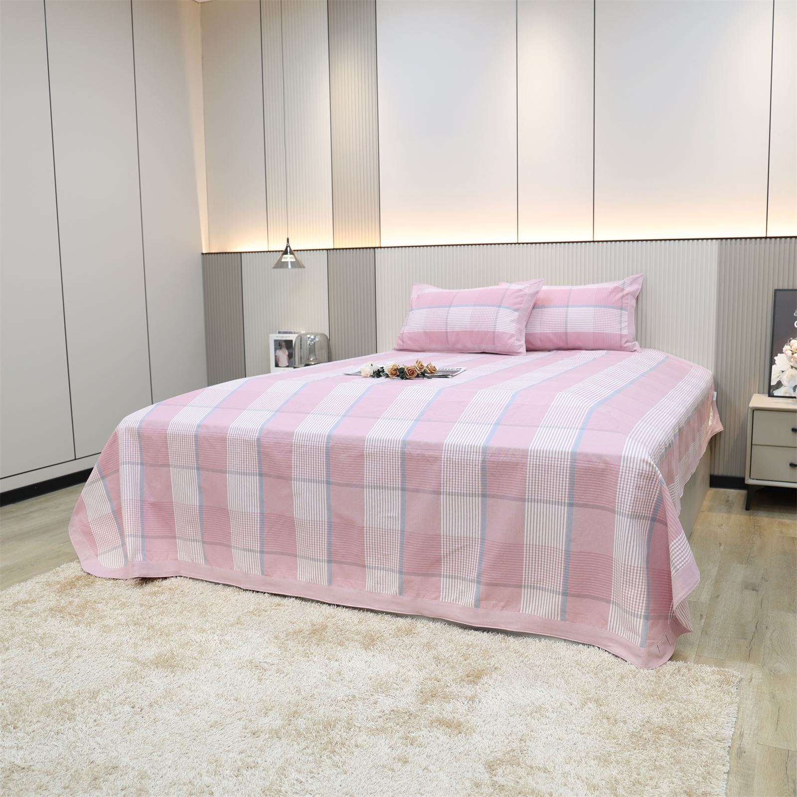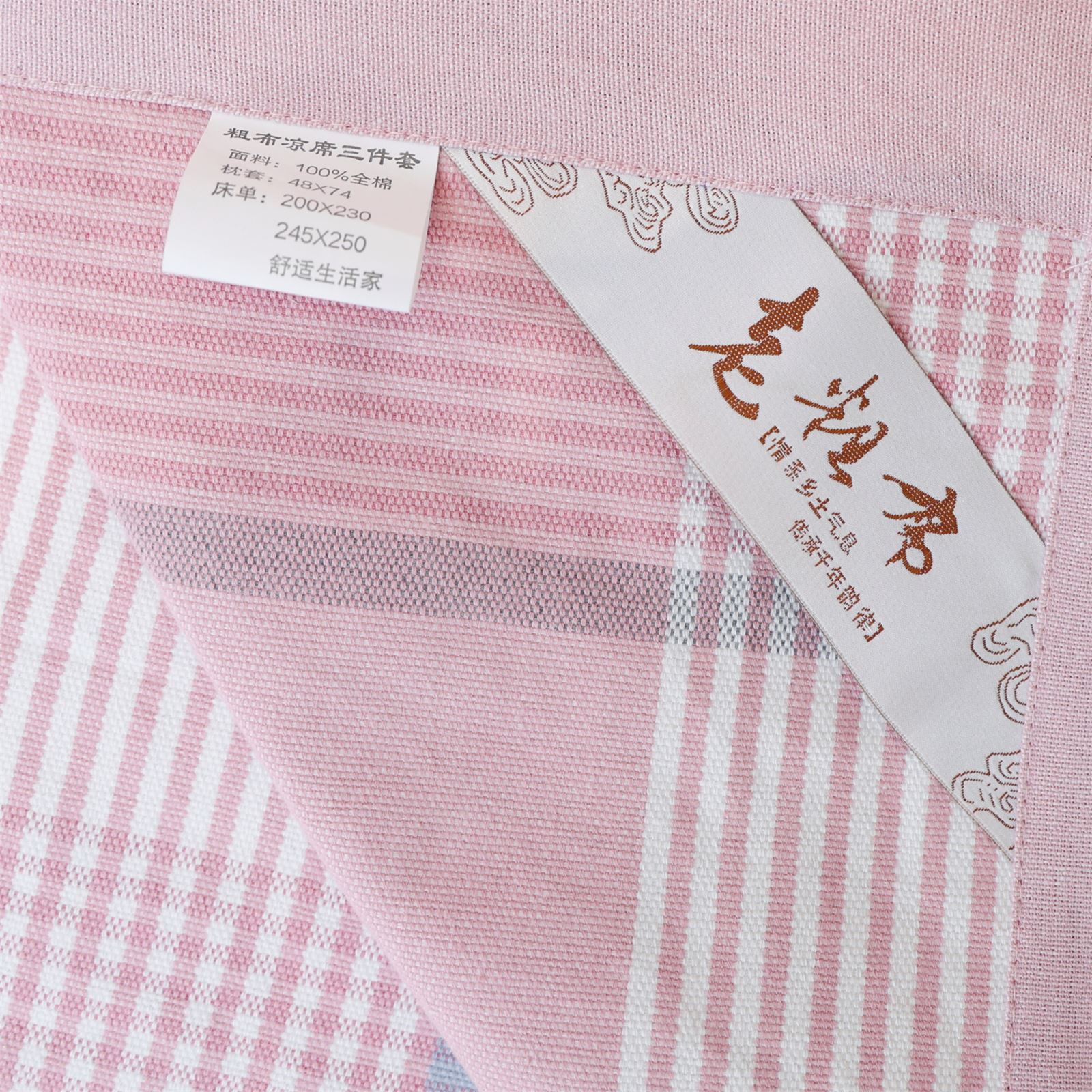 FA-68 粗布凉席三件套-粉白相间