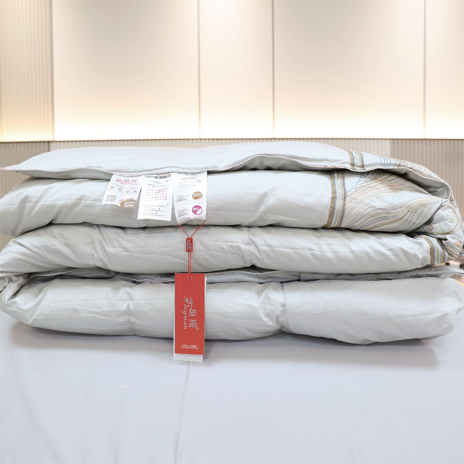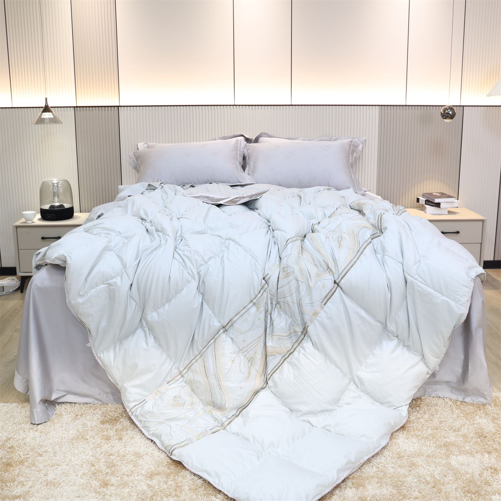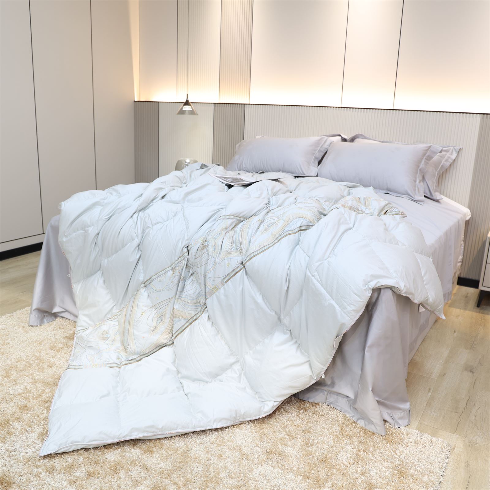 A-611 绣花活被头羽绒被-竹青灰