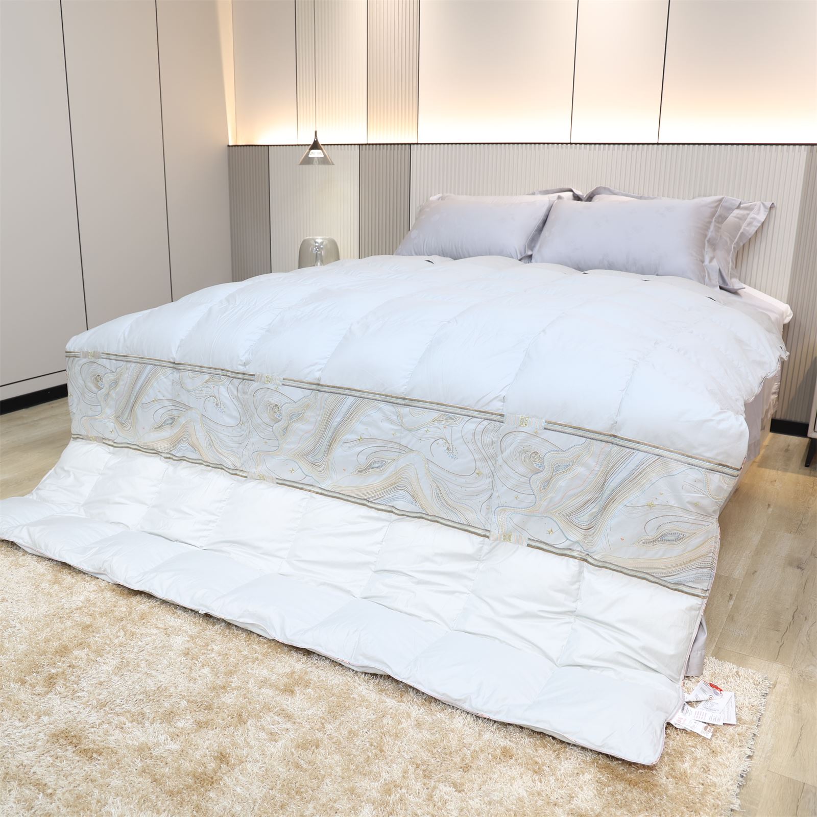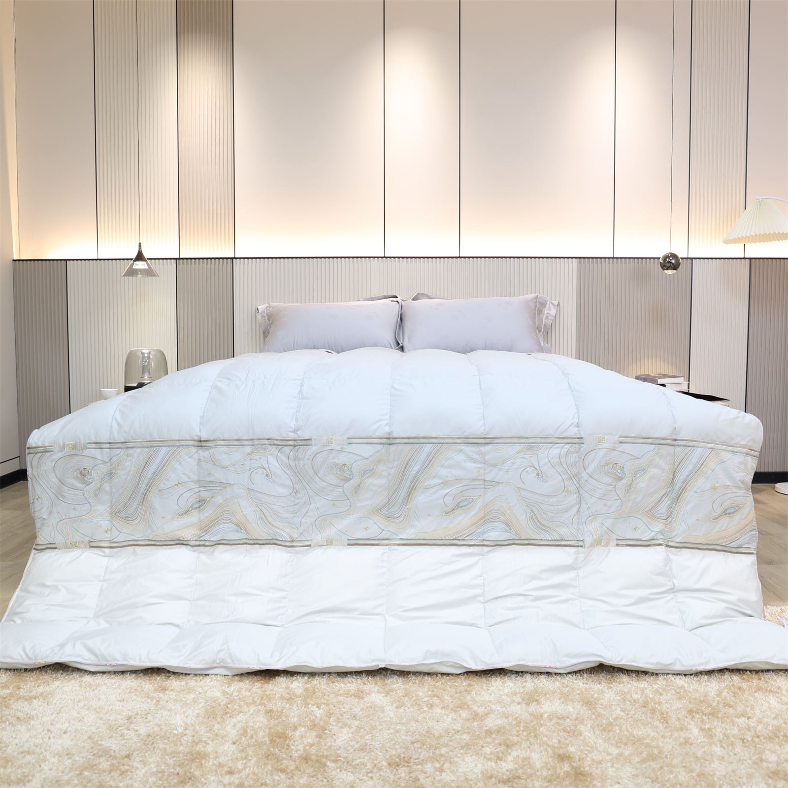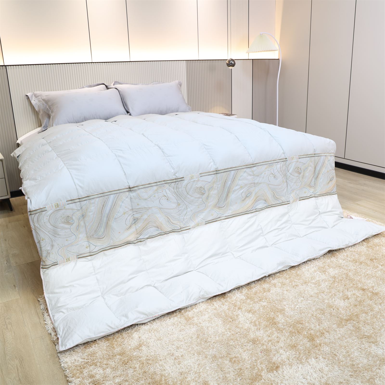 A-611 绣花活被头羽绒被-竹青灰
