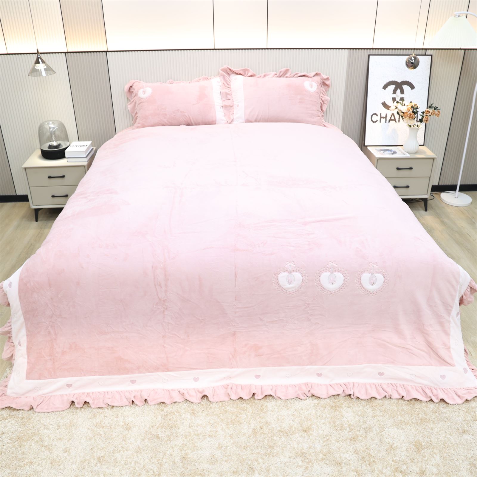 K-524臻棉绒浪漫心海-蜜桃粉