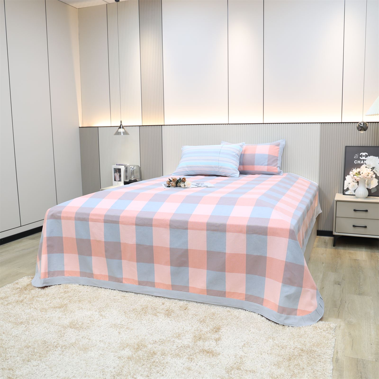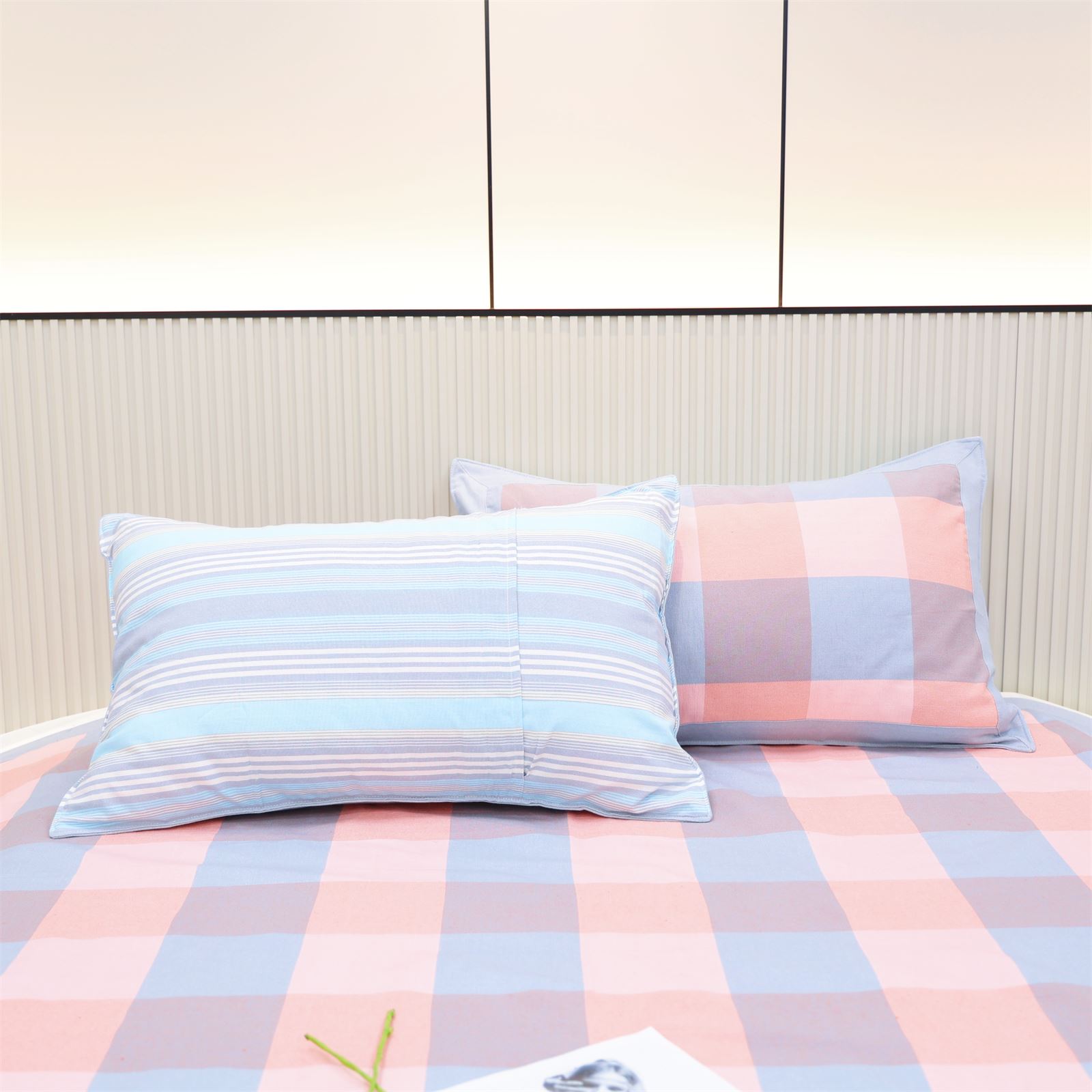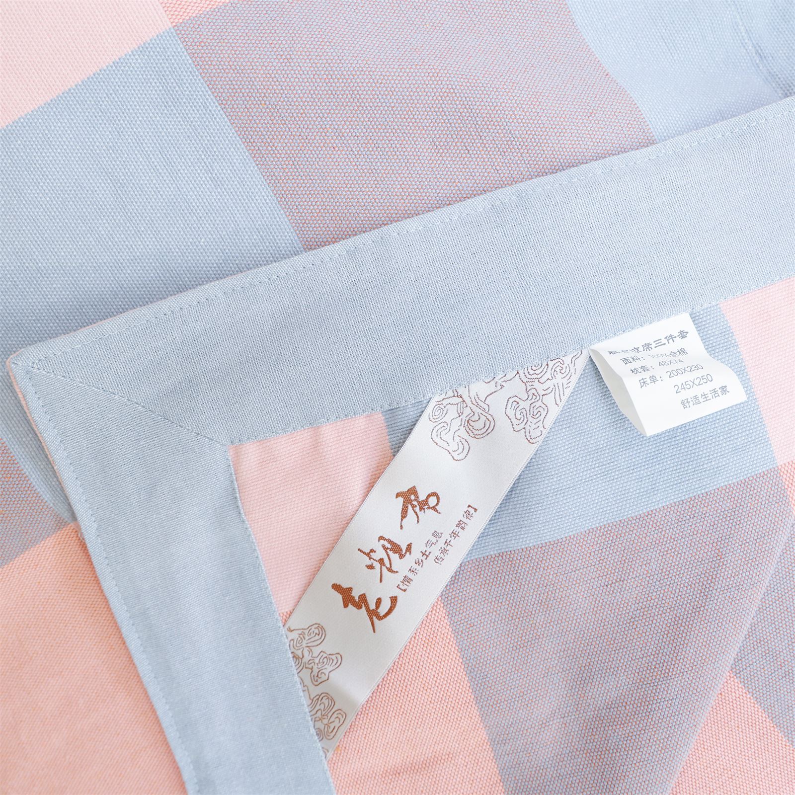 FA-69 粗布凉席三件套-粉蓝方格