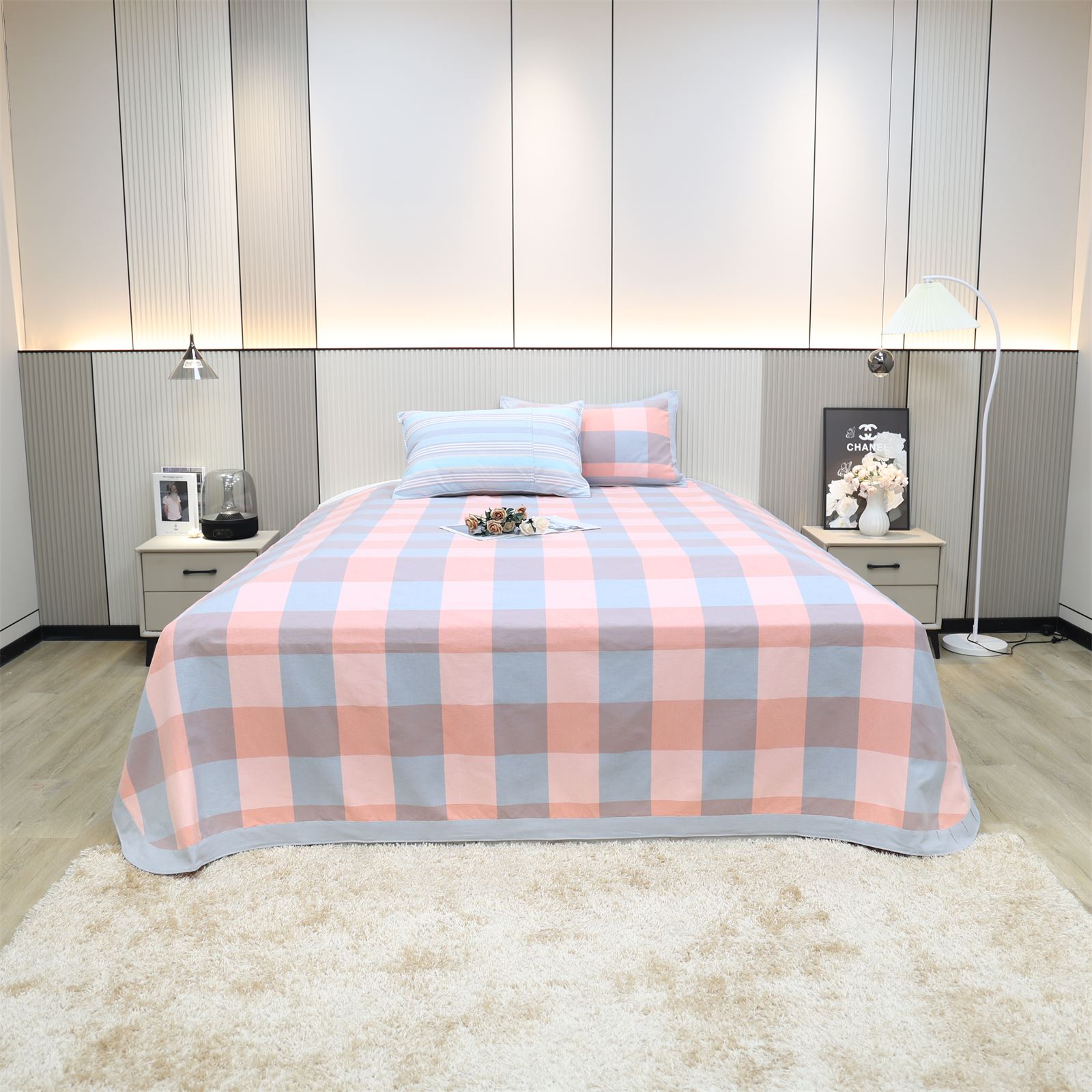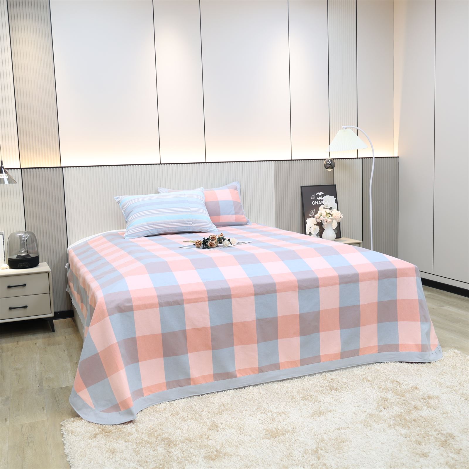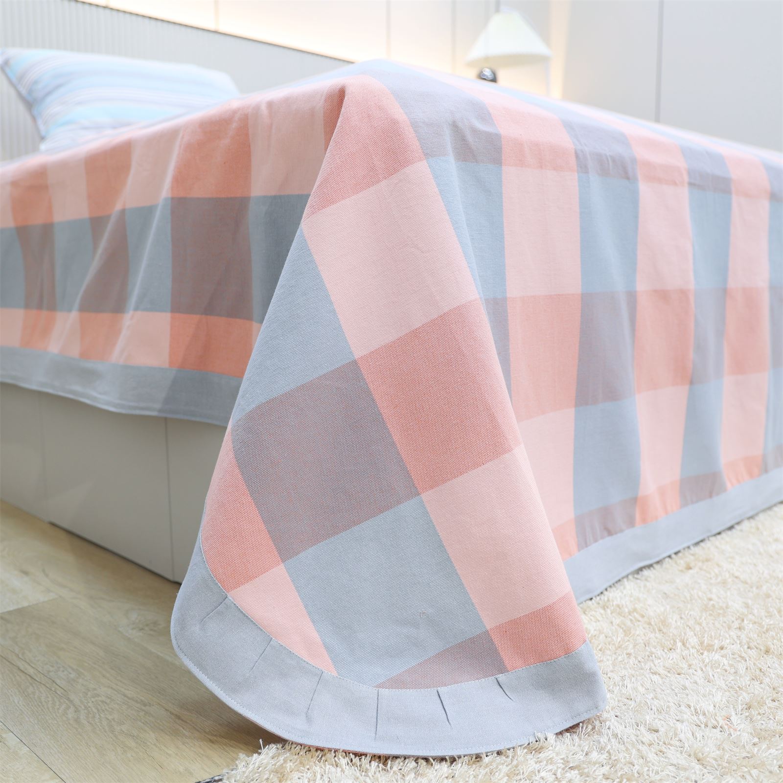 FA-69 粗布凉席三件套-粉蓝方格