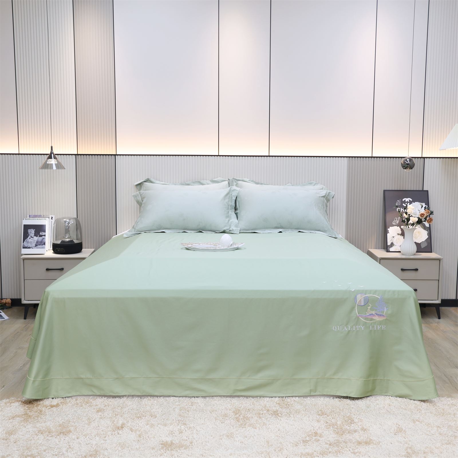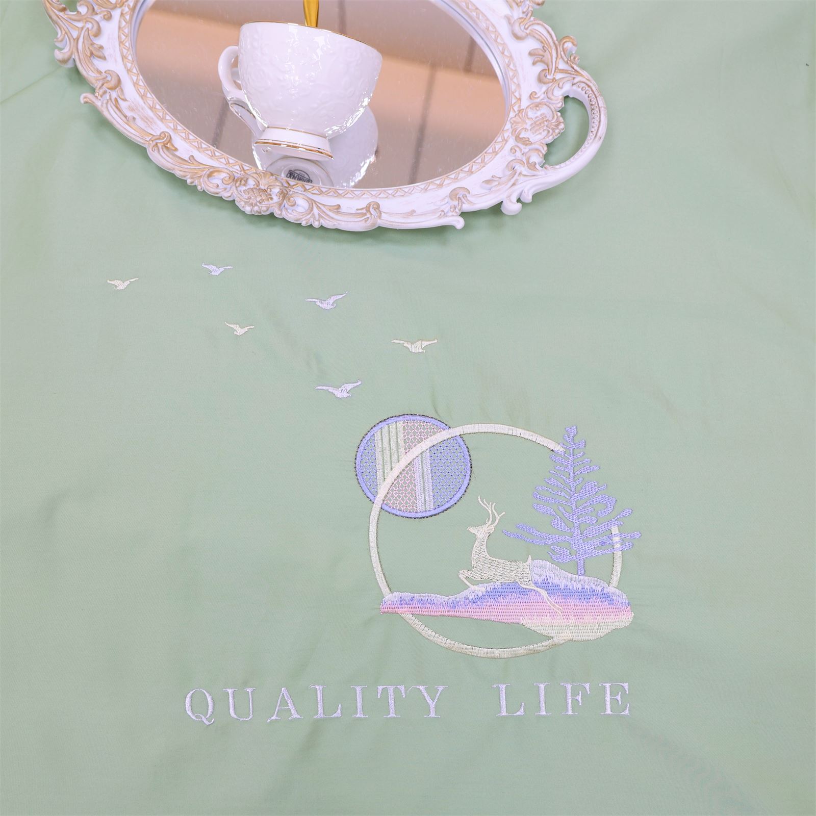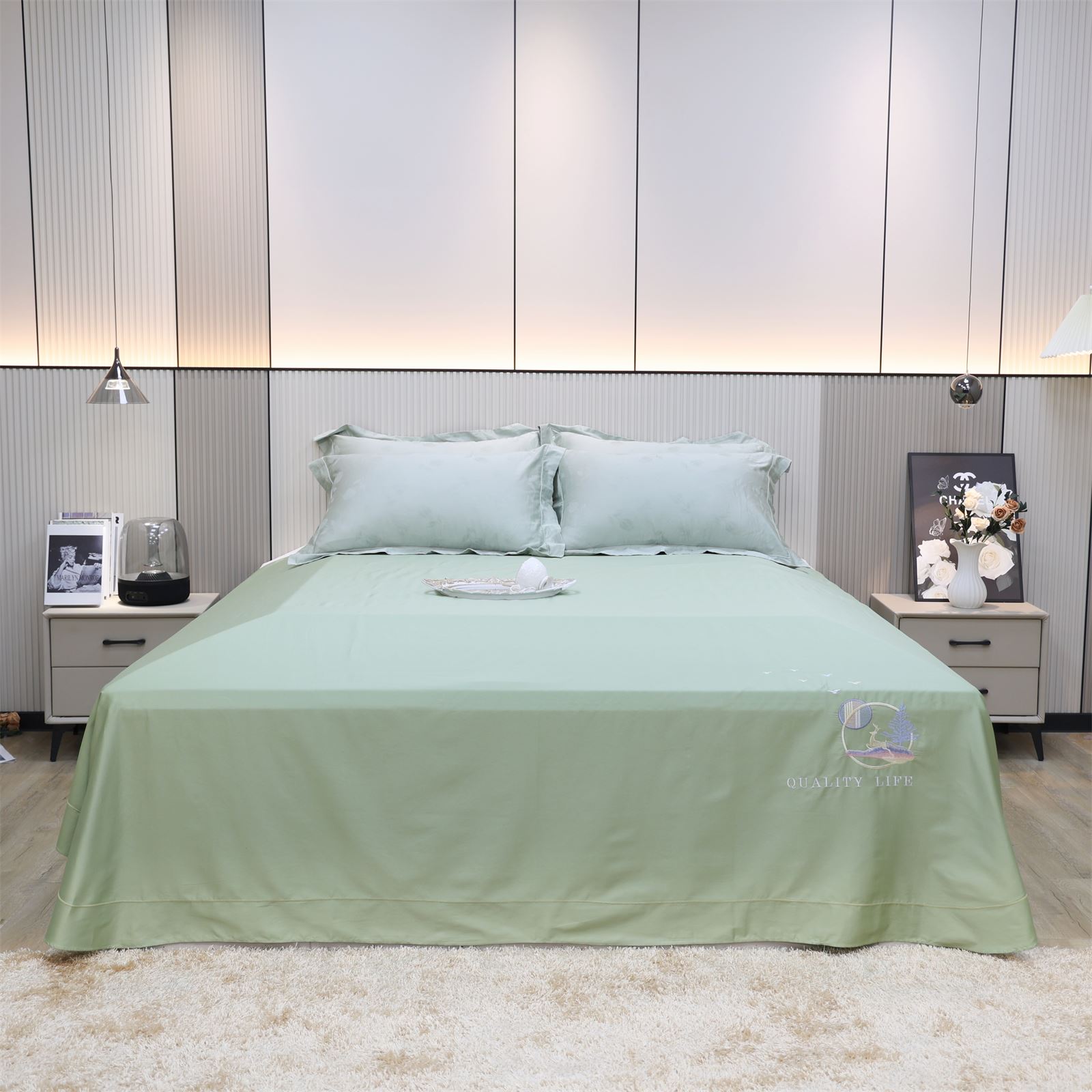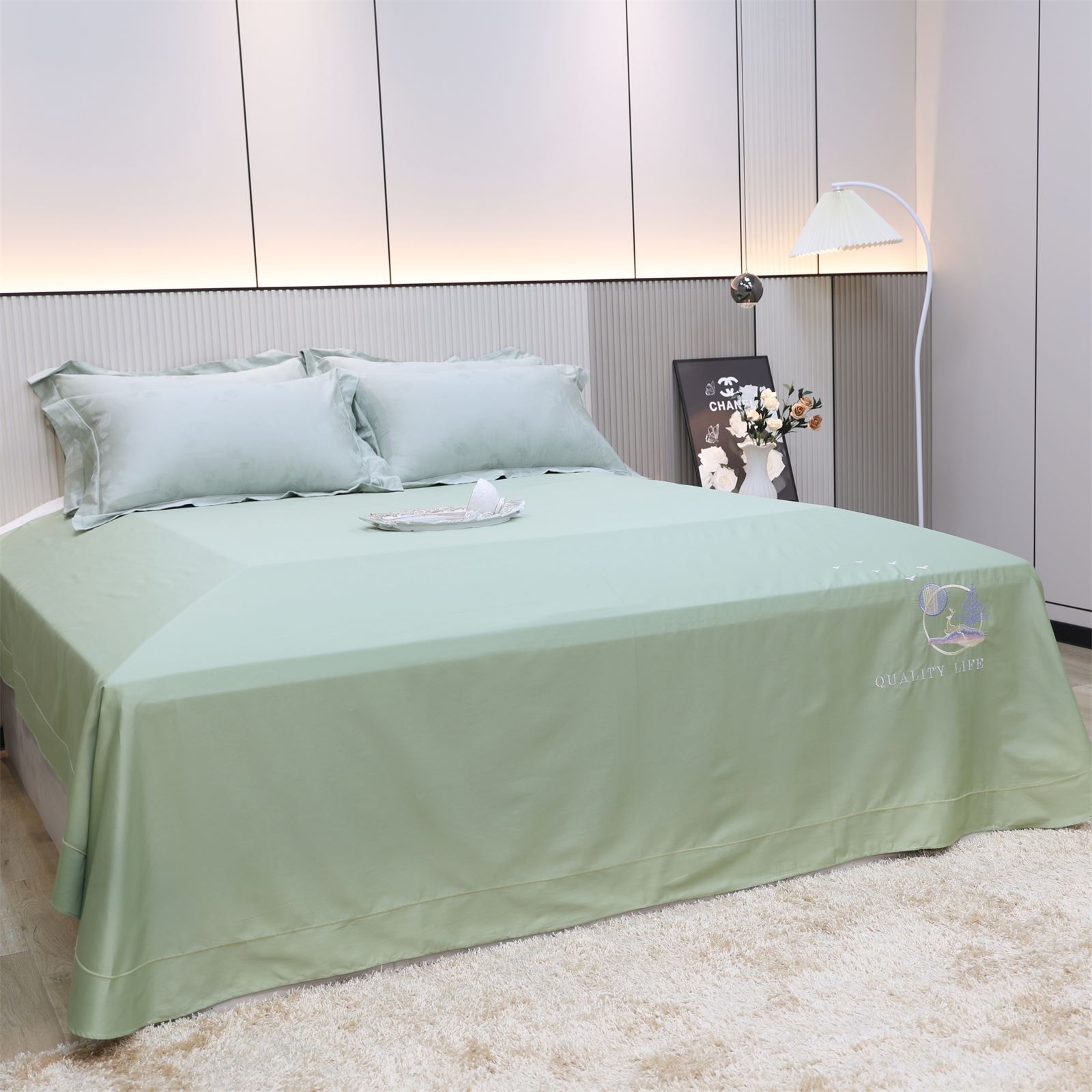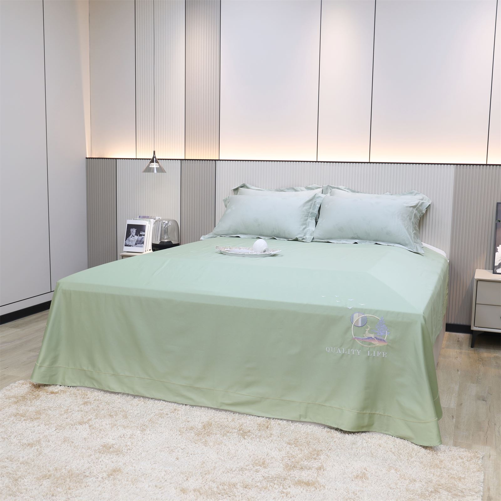 F-53 长绒棉绣花工艺床单-抹茶绿
