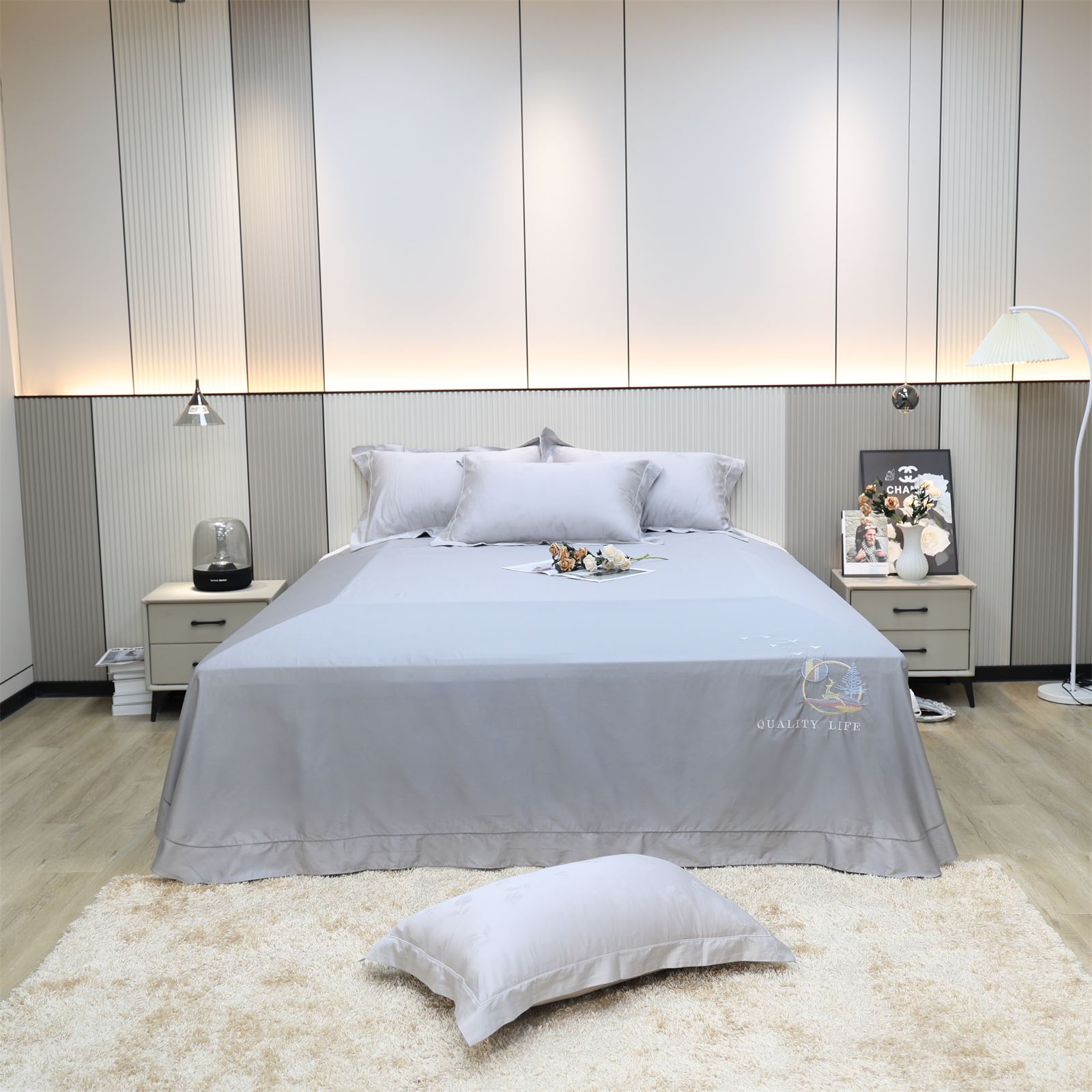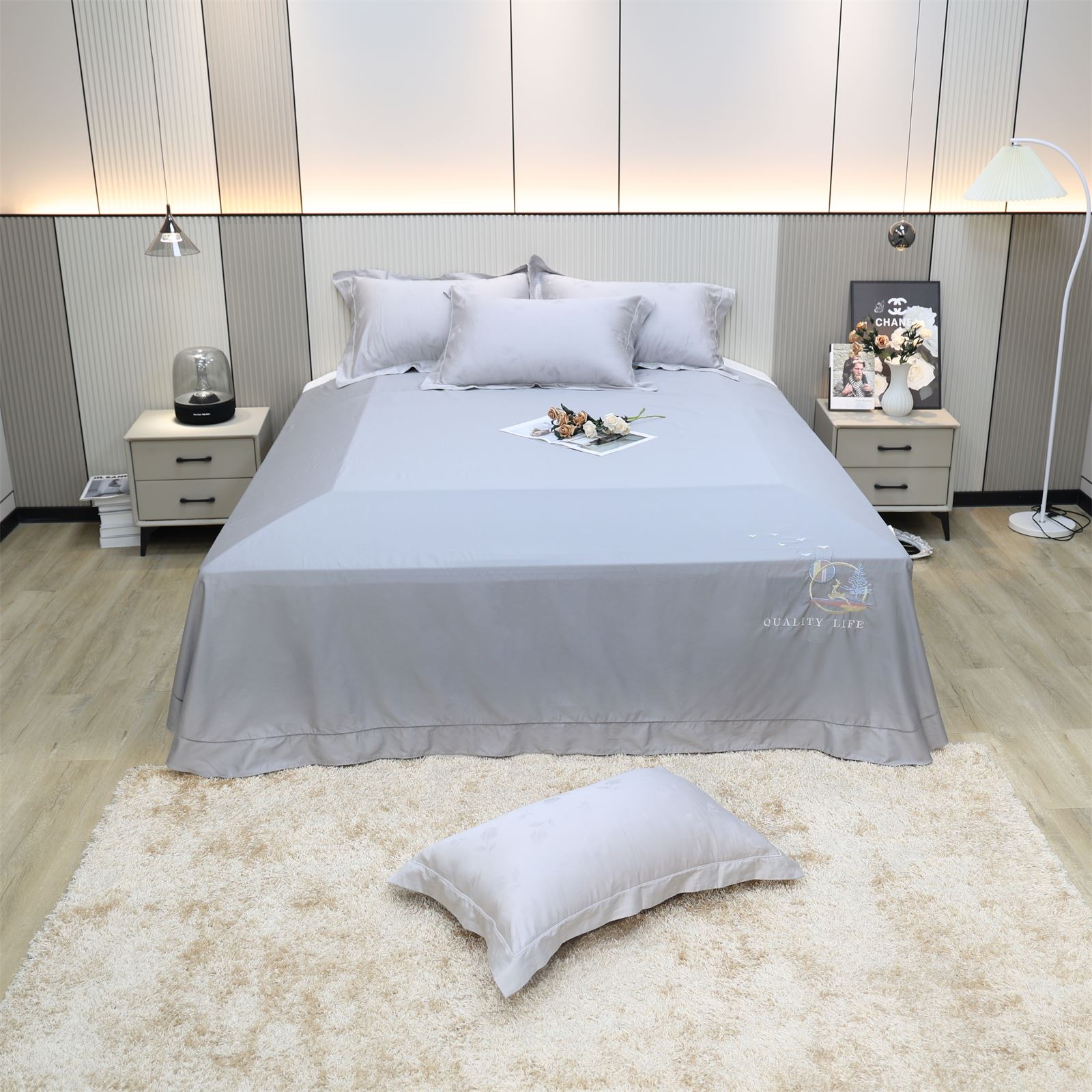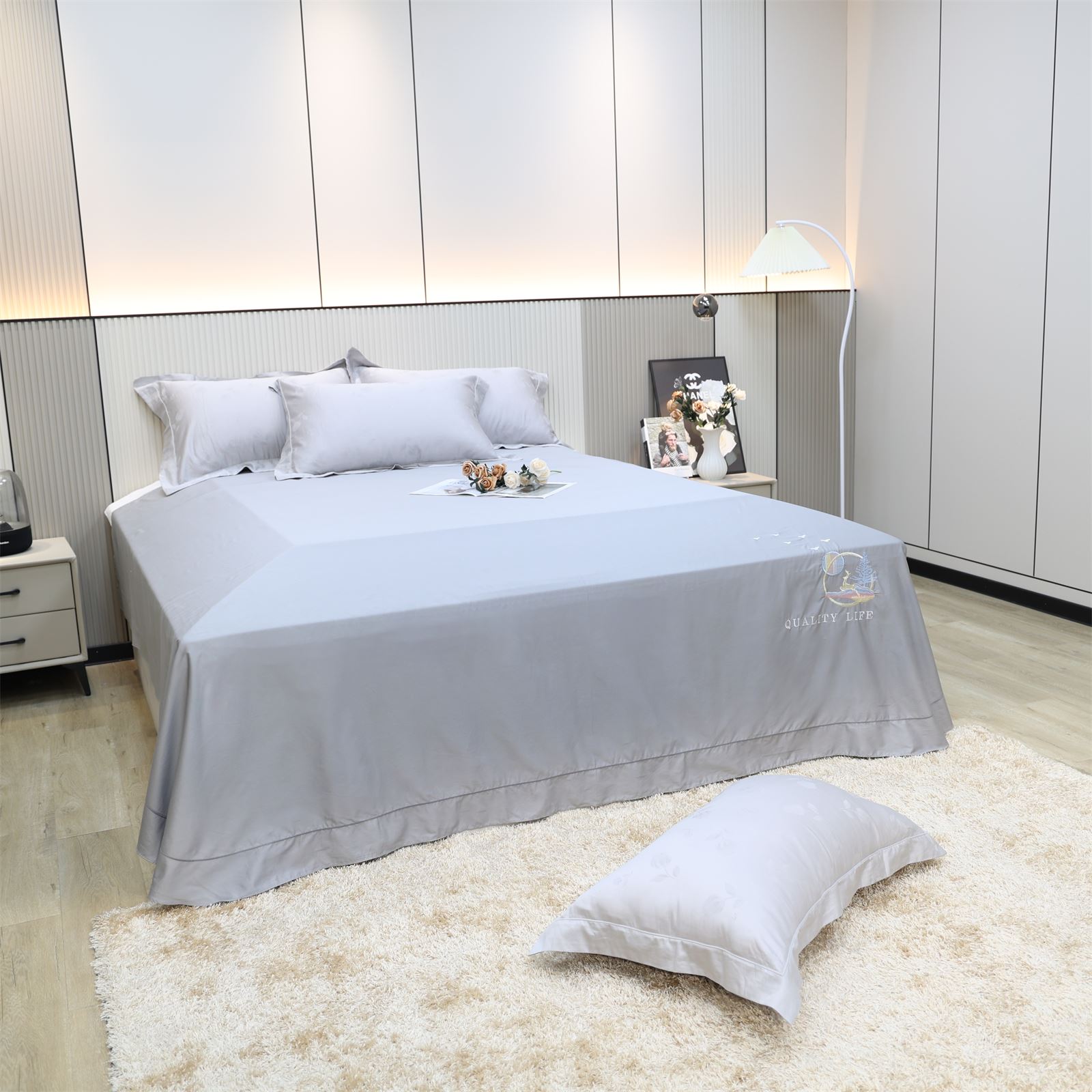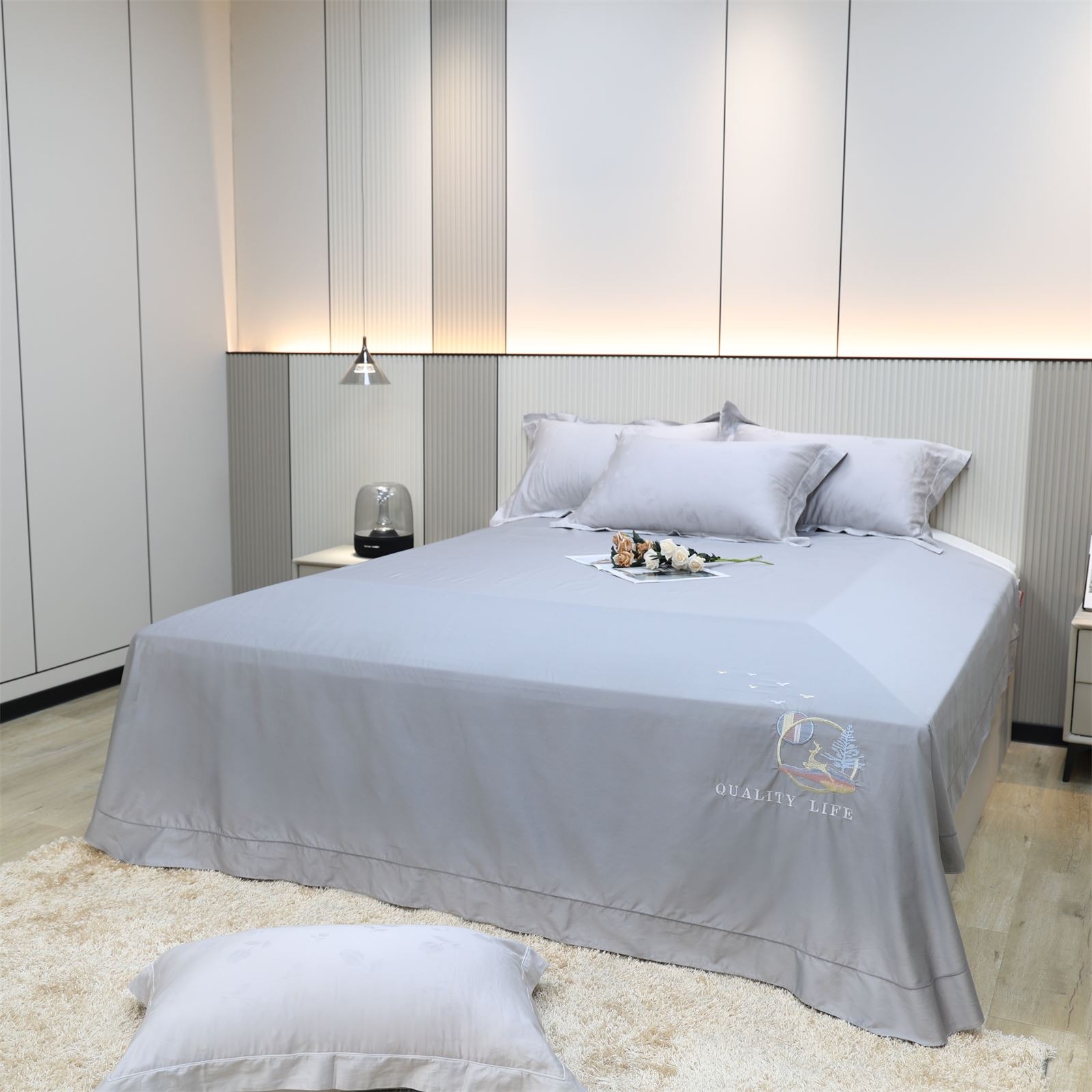 F-37 长绒棉绣花工艺床单-灰
