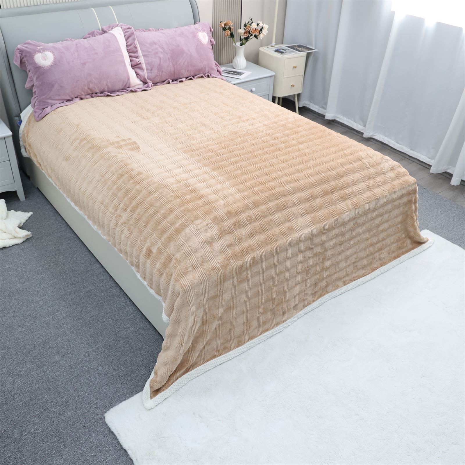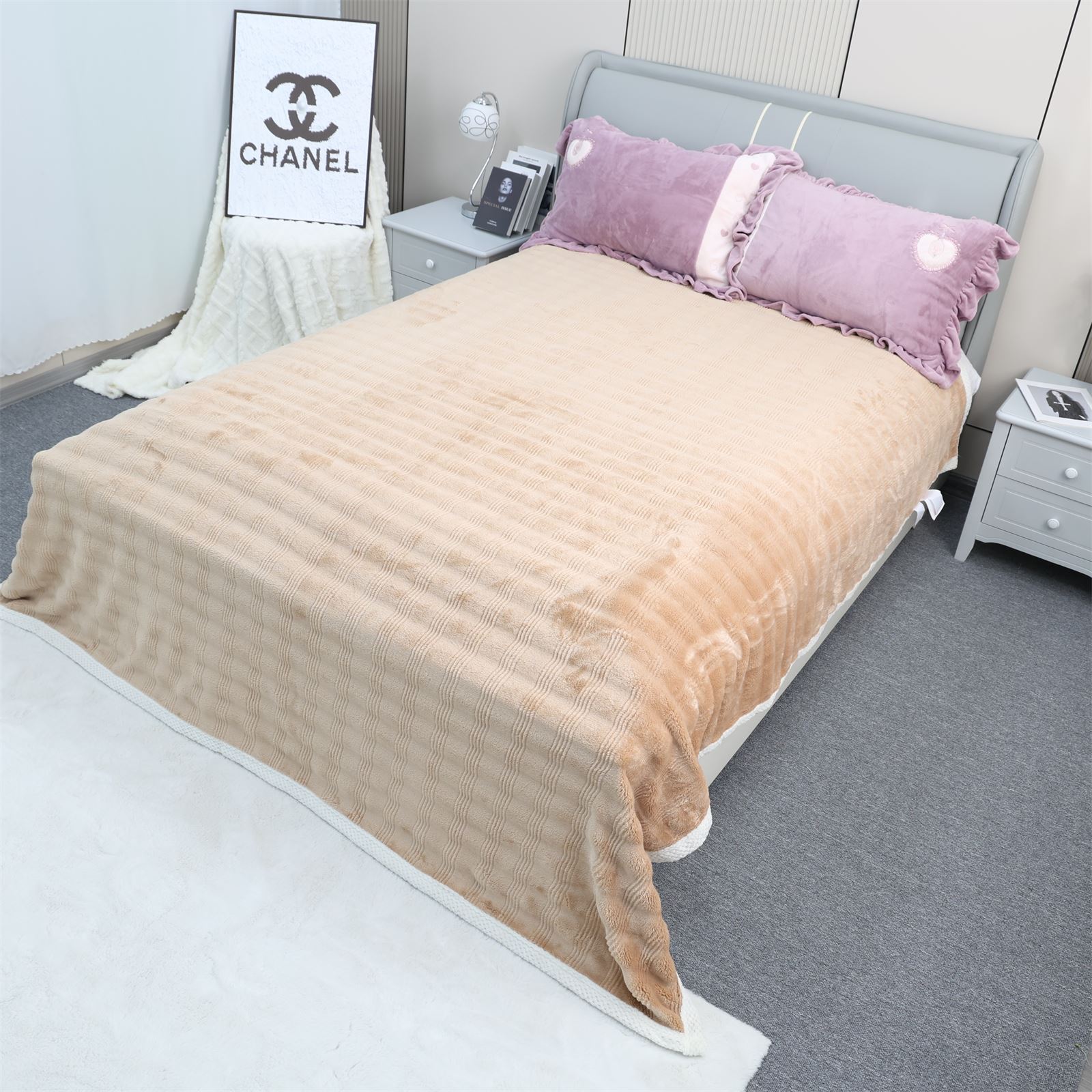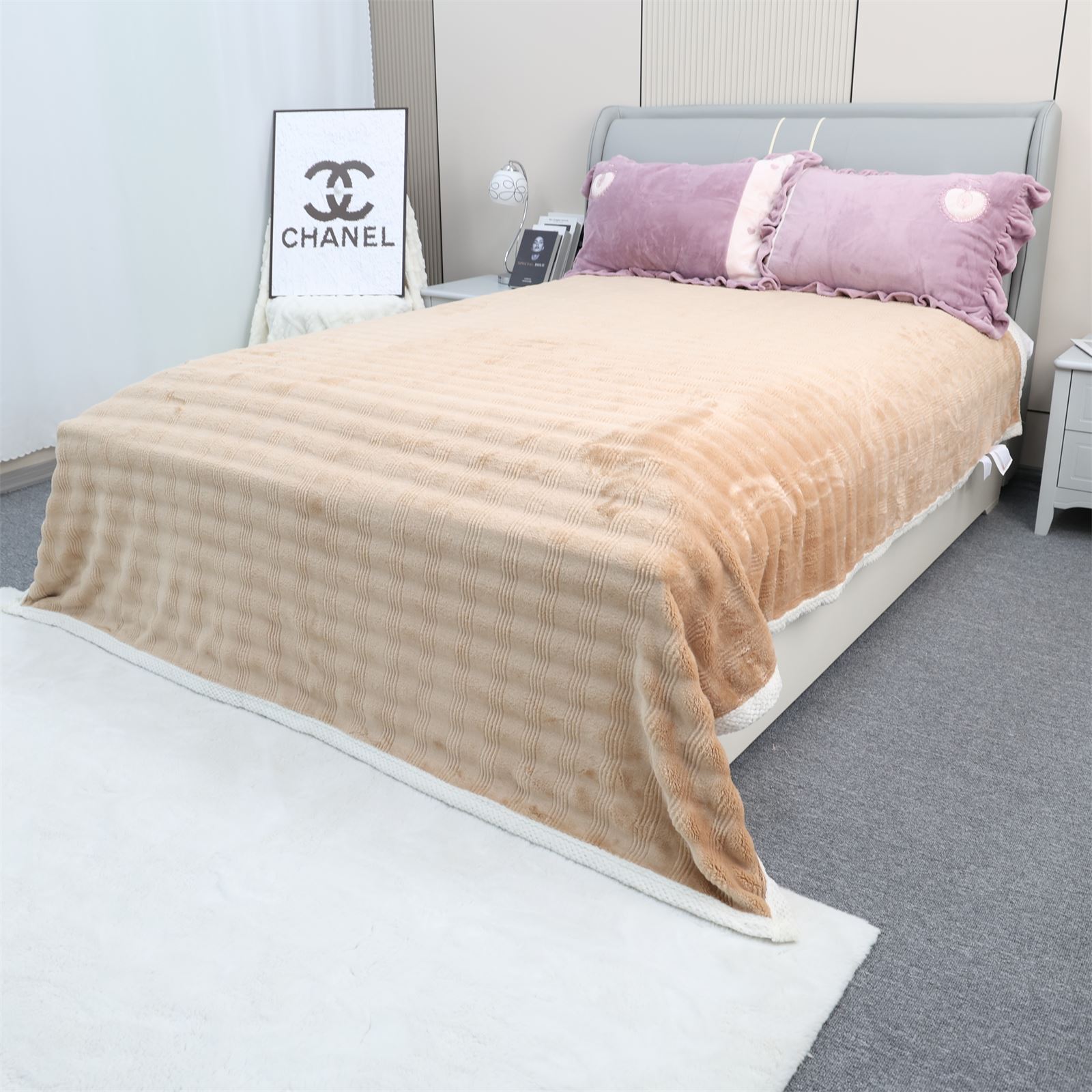 F-1009双面绒包边盖毯-奶咖