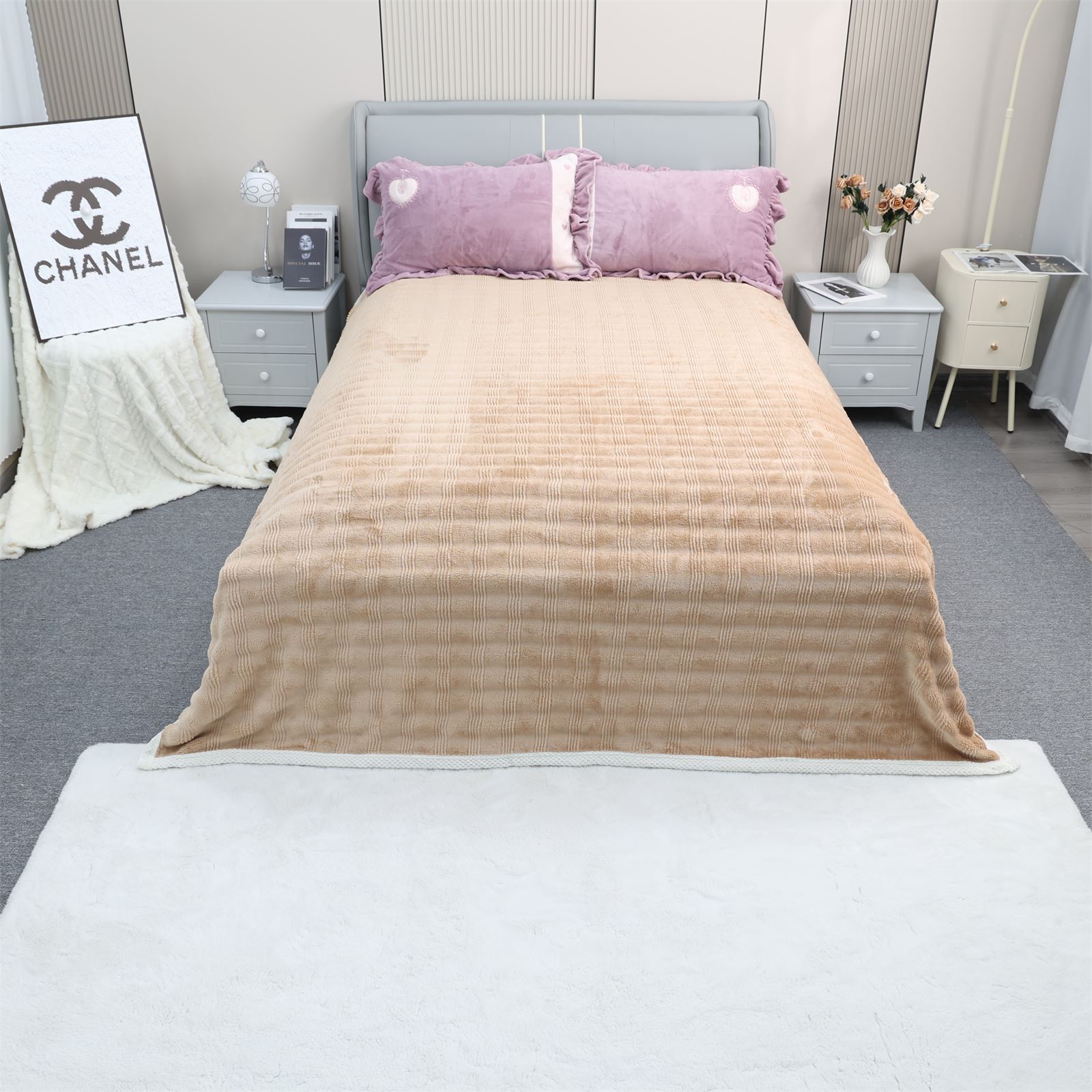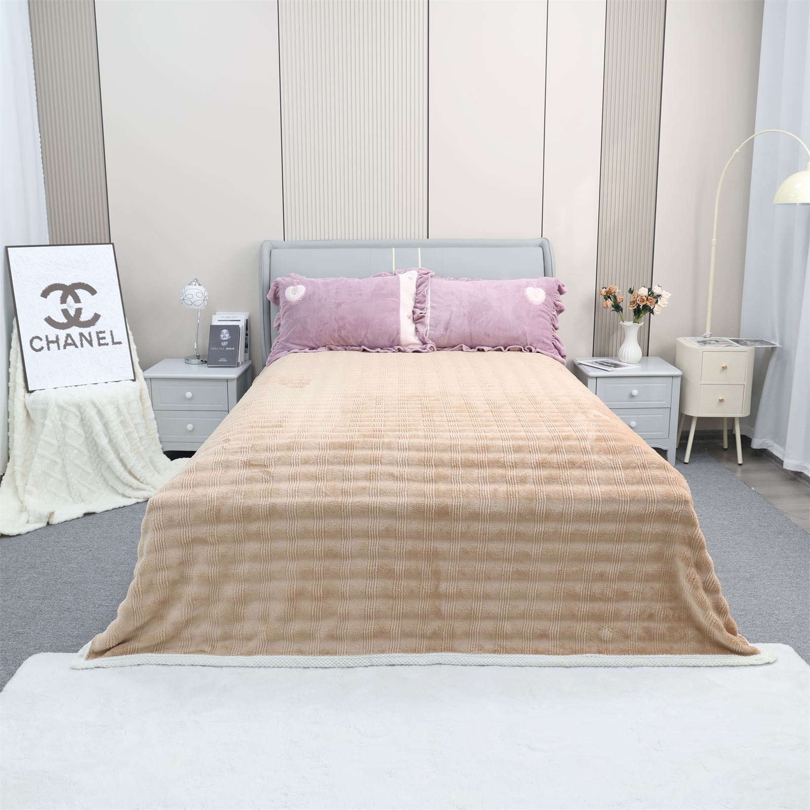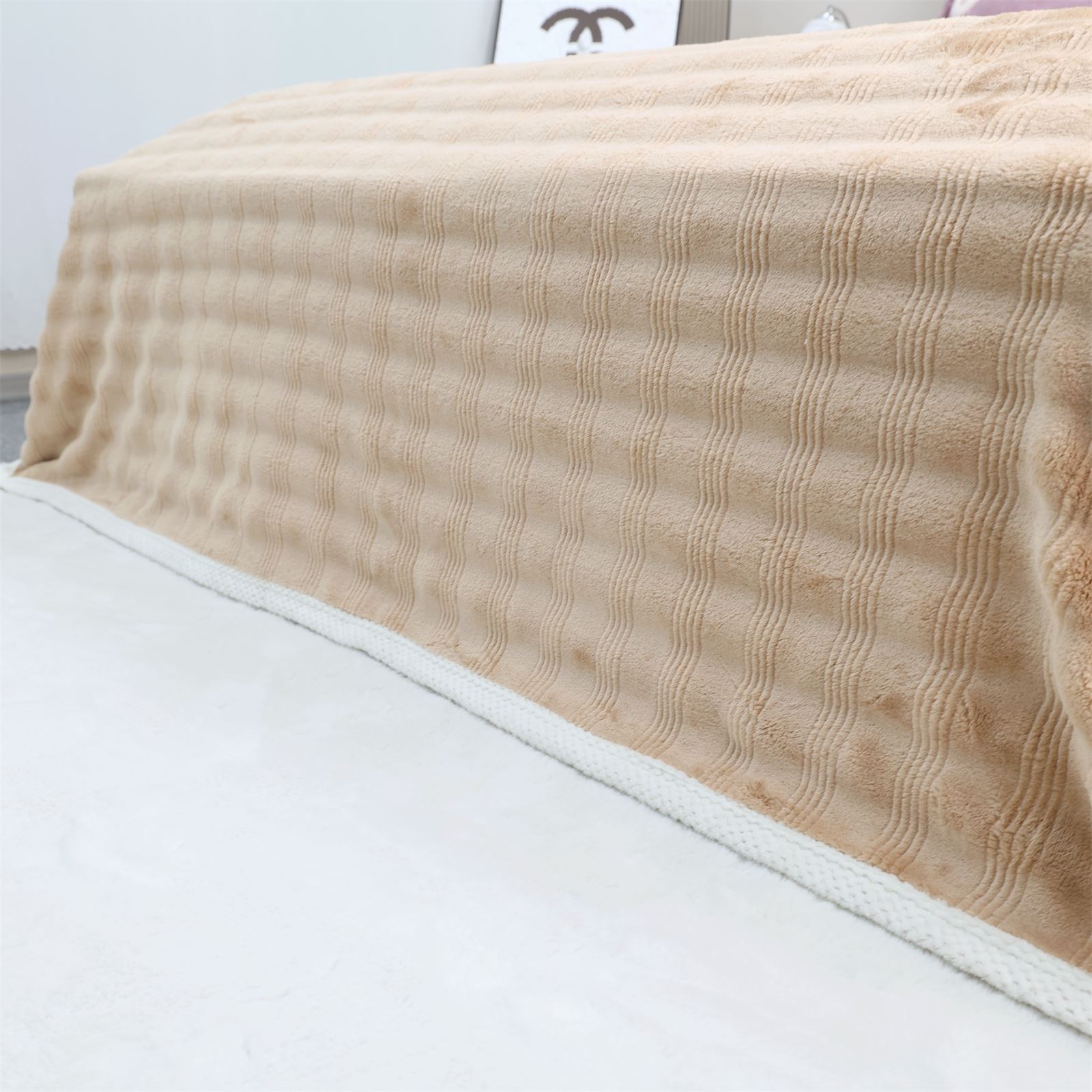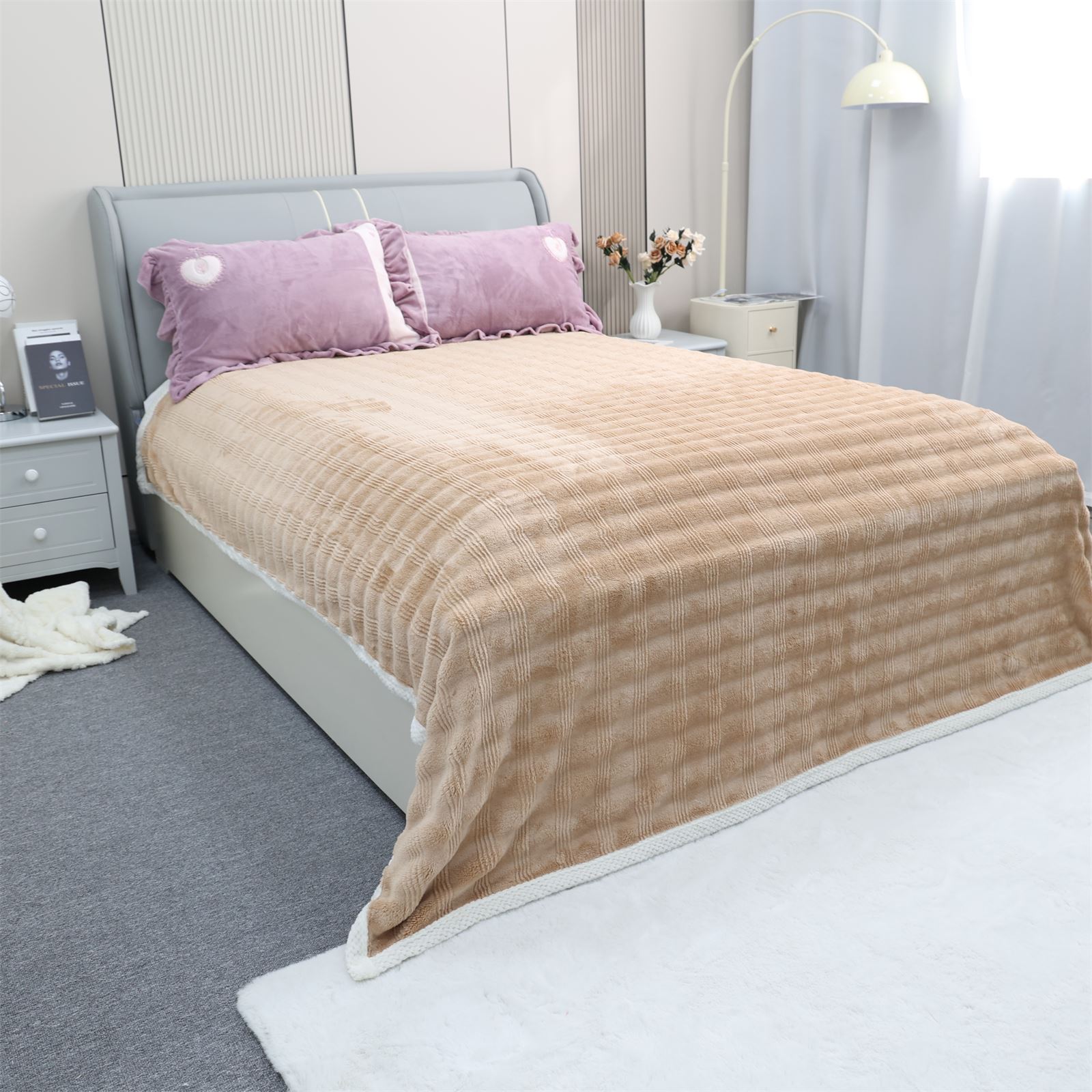 F-1009双面绒包边盖毯-奶咖